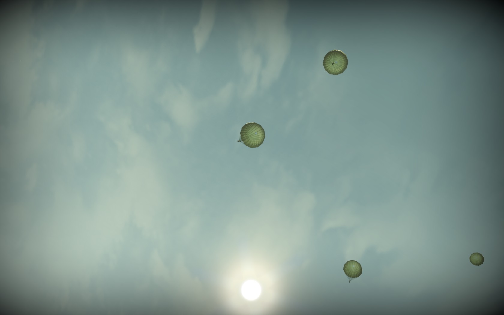 Друг подкинул скриншоты парашютов из "Крылатых хищников"... Судя по ним, форма этих парашютов не очень сильно отличается от Иловских - тот же 12-уголник при обзоре снизу. Не ясно как сделаны выпуклости секторов... Возможно "мандаринистость" обыграна цветом скина, т.е. светлые места купола (скина!!!) отражают свет, а темные поглощают... Хотя тени от них падают исправно... Последний раз редактировалось StRanger; 28.03.2010 в 20:14. |