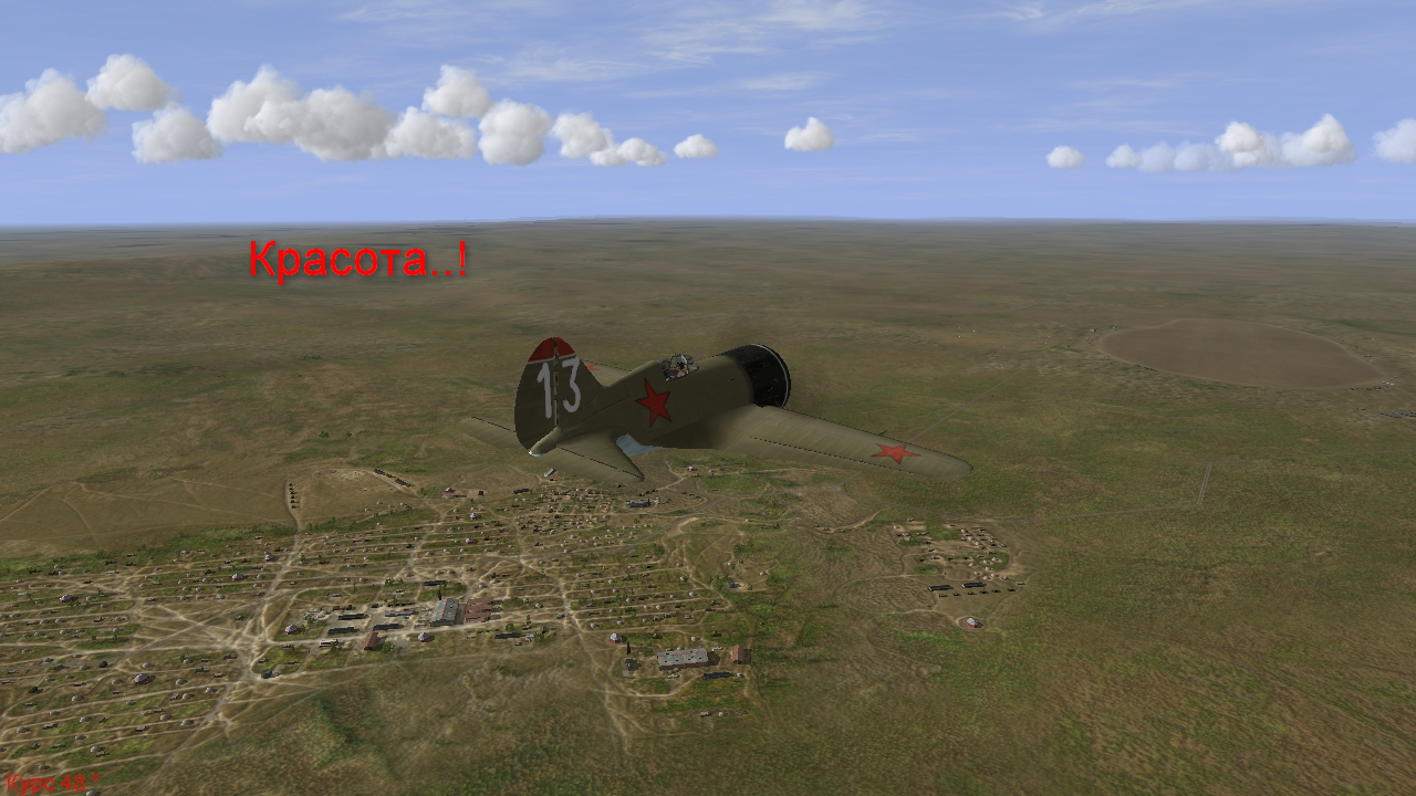 Хотел показать виды из кабины, для того, чтобы видно было цели -более-менее различимы. Пока выбирал ракурс, сзади Ки-27-козырек мне попортил. Это не специально. |