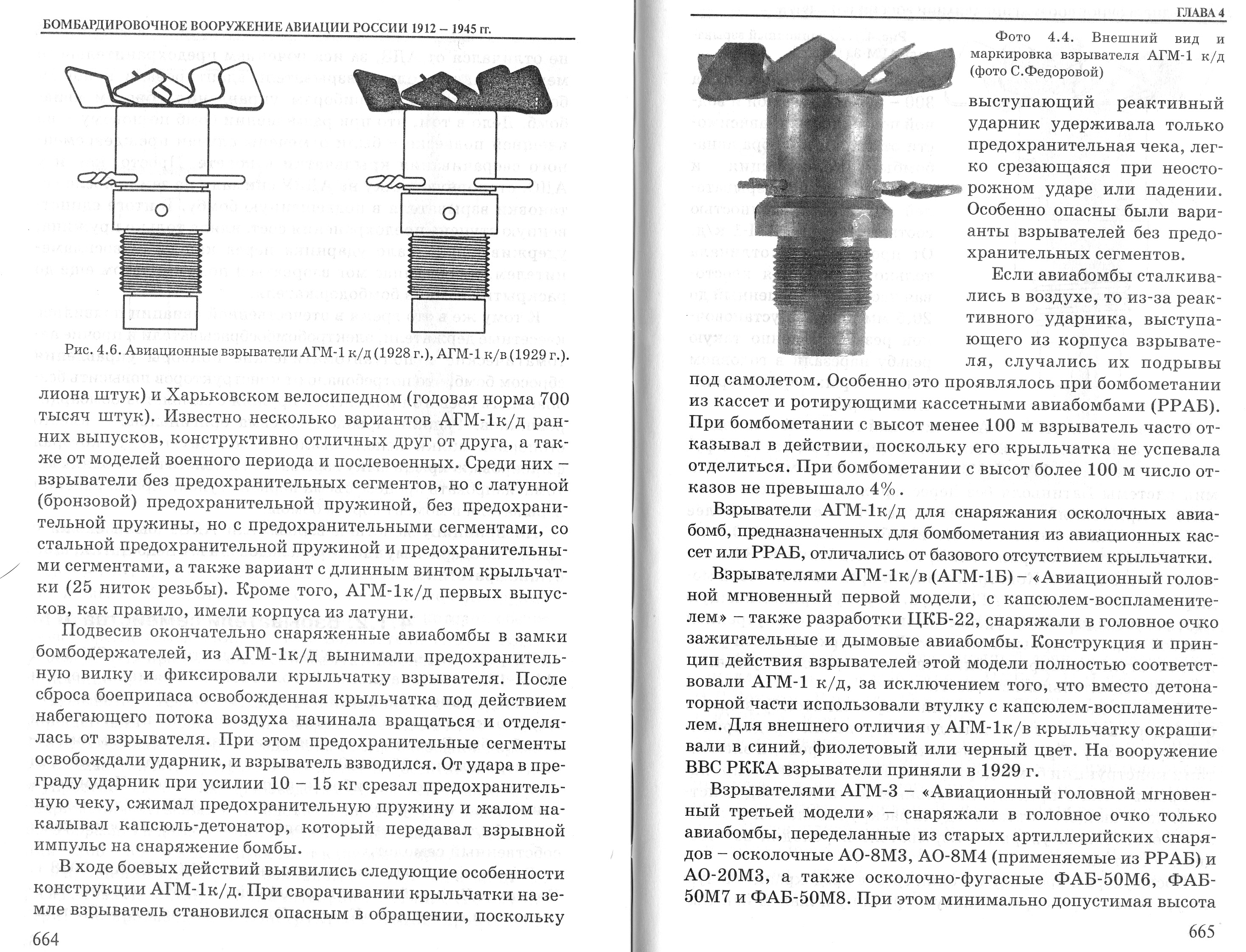 4. АГМ-3 "Авиационный головной мгновенный третьей модели" применялся для снаряжения осколочных и осколочно-фугасных бомб. Минимальная высота применения 300-600м.