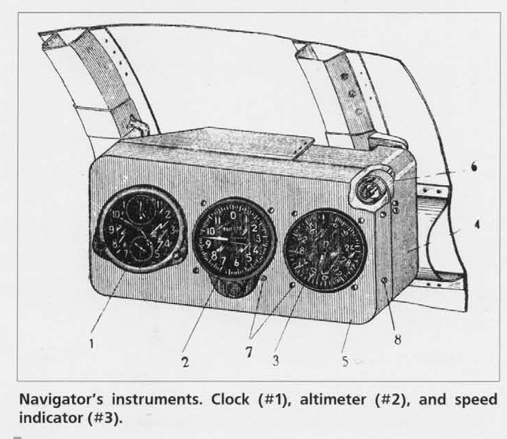 один по пилоту ( но и штурмана касается ) Сигнальный прибор ( если я правильно понимаю, то с помощью него штурман указывает на изменение курса при корректеровке курса "на боевом" ... ( картинка 7) интересуют лампочки ... их три ... какого они цвета должны быть? ... и теперь вопрос по намечающемуся Штурману ... на картинке "2" ... обеведены Щиток с приборами штурмана и часы в отдельной оправе ... на картинке "8" изображён тот же щиток штурмана ... на обоих схемах на щитке три прибора ... Часы - Альтиметр - Спидометр... но на схеме "2" ... есть добавачная панель с часами АЧХО.... но при этом если рассмотреть картинку "8" .. то крайний левый прибор кажется иесть эти хитрые часы АЧХО с секундомером... что то мы теряемся в догадках ... не ужели обычные Часы на тройном щитке а рядом отдельные Часы АЧХО на своей панельке? ... подскажите! ![]() с Уважением!)