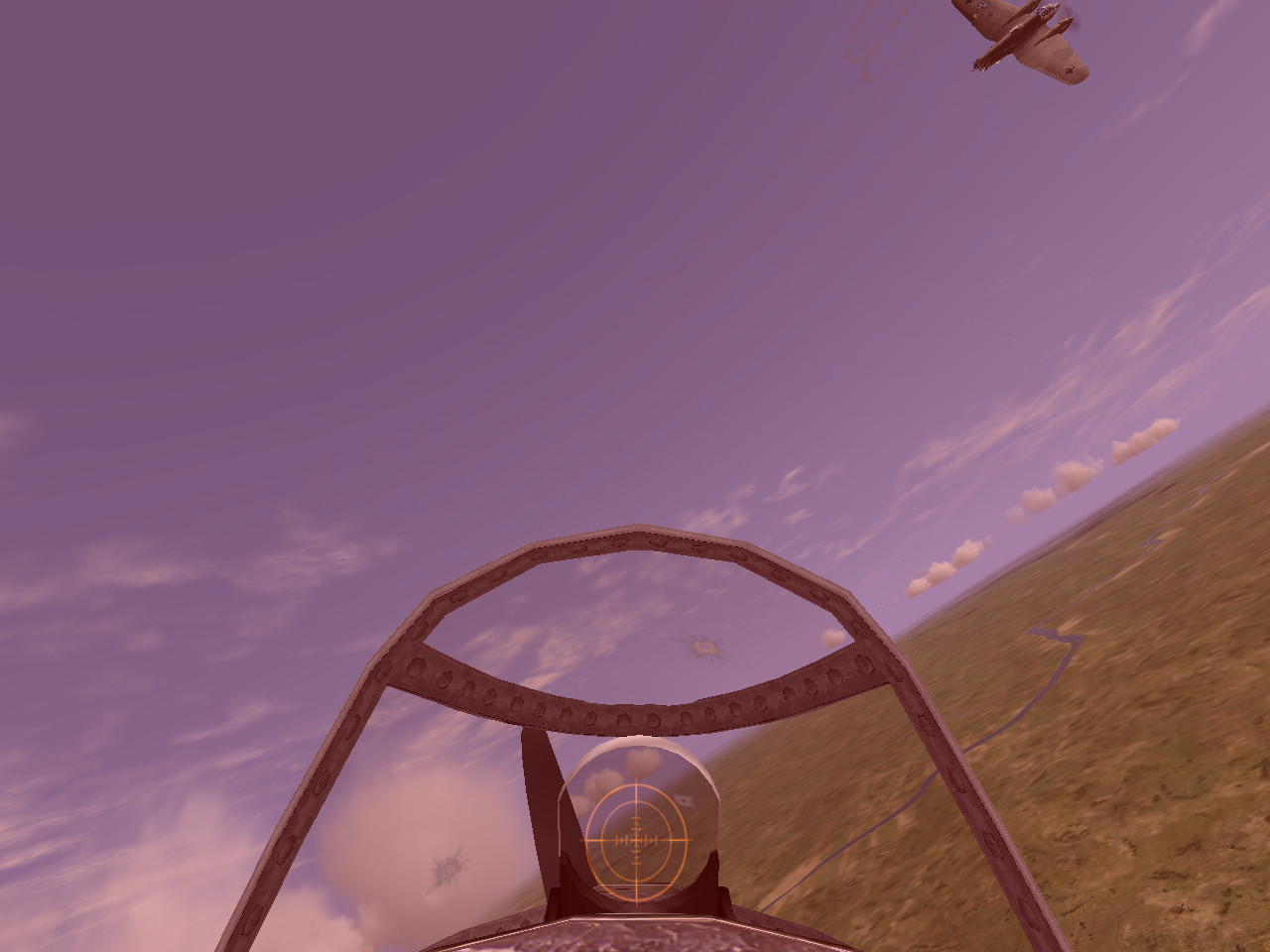 В следующем вылете перехватил формацию тех же Хенкелей....одного завалил атакой сверху(соколиный удар)потом потерял скорость на горке, мотор зачихал всё ждал подвоха от истребителей, но их не было, зато как я потерял скорость, два бомбера стали за мной гонятся(Видать мстили за сбитого).....расстреляв все патроны решил! тараном свалить стервятника.....