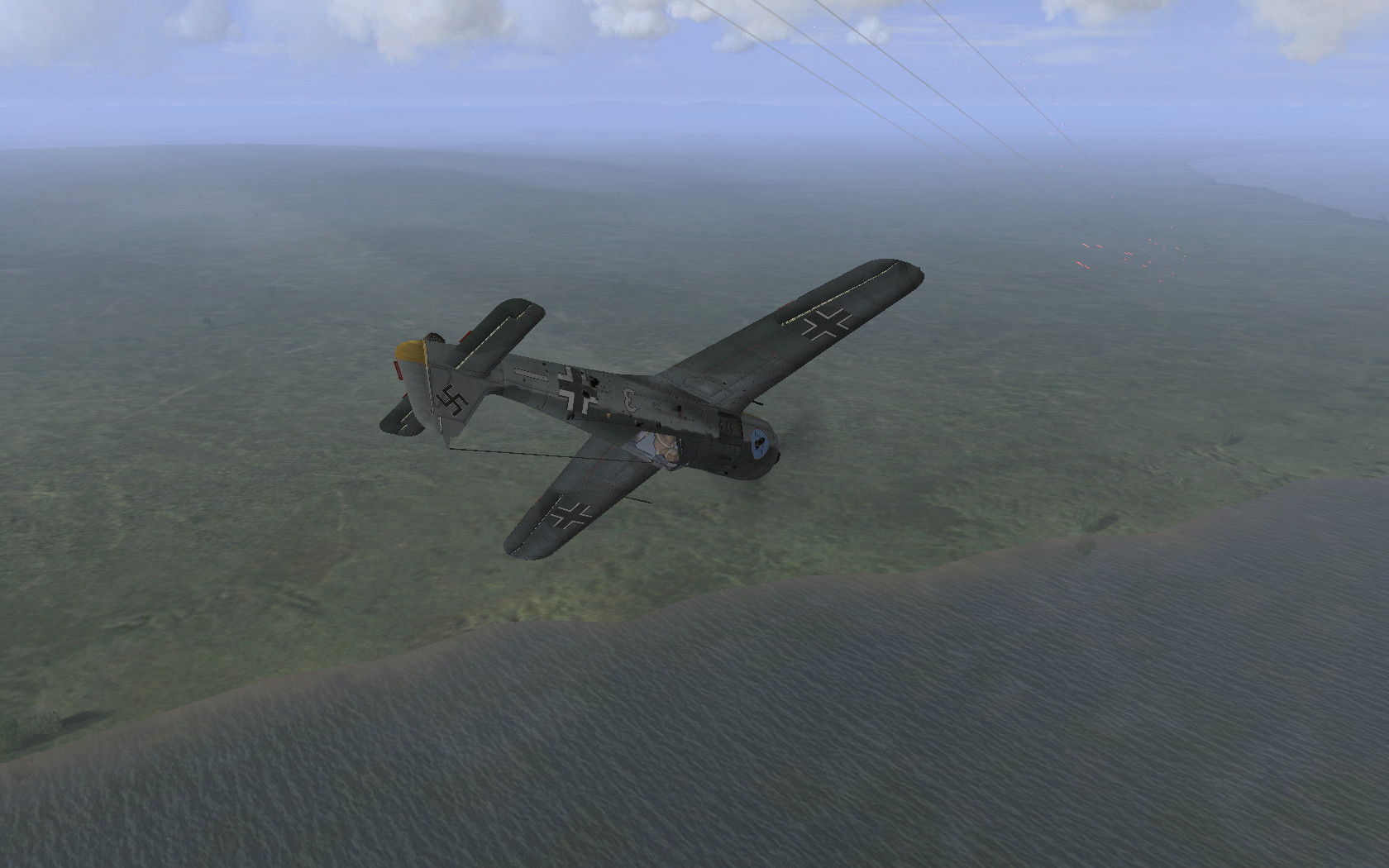 Итог кампании у меня получился впечатляющий. Сбил 20 самолётов, правда как падали, взрывались, разваливались видел только 12. С наземкой не густо получилось, только один кораблик и 21 машина. И самого два раза подбивали на севере, один раз на пузо сел, второй пришлось прыгать.