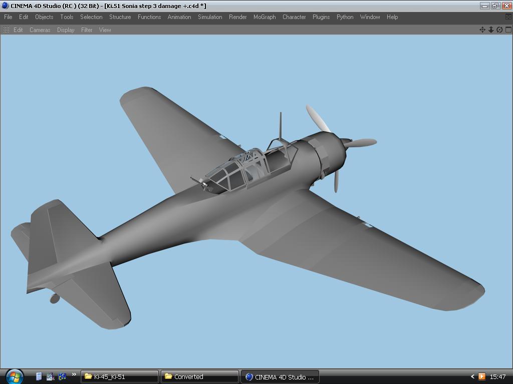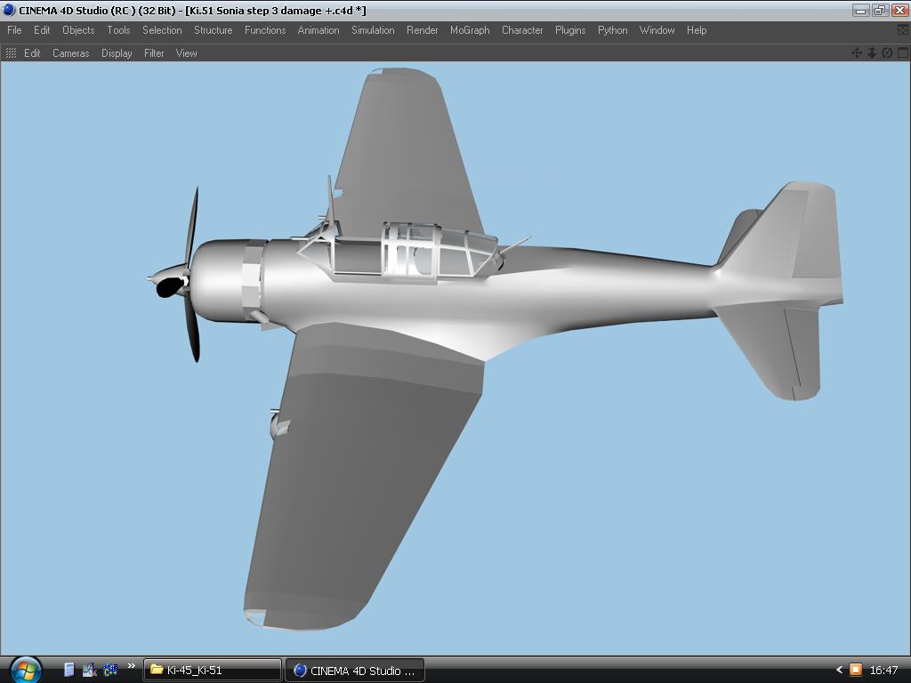 Делая крылья радиатора, обратил внимание на неверно сделаный моторный отсек. Переделываю. Заодно поправил пузо машине. Каждая сворка основного радиатора является независимым объектом с установкой оси Y таким образом, чтобы створка открывалась корректно ("как дверца")