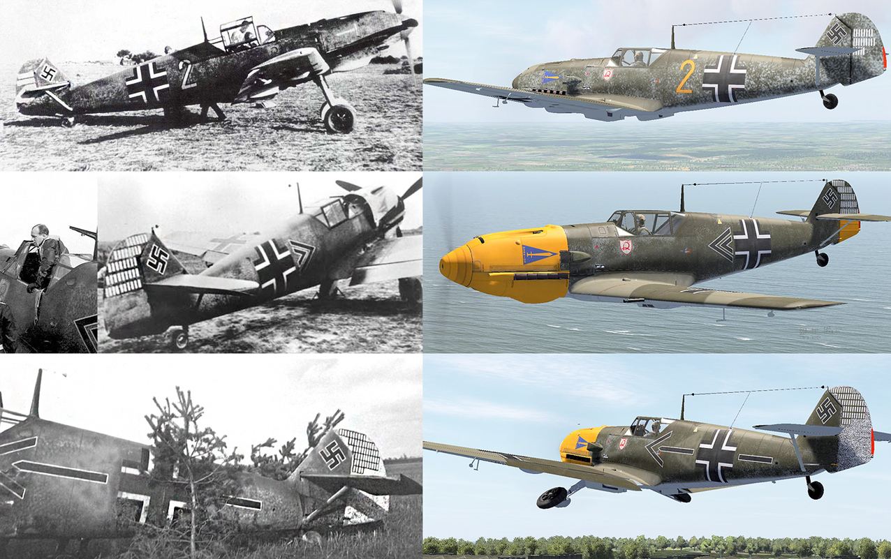 “Angeblich wurde diese Bf 109E mit der Aufschrift „Achtung Anfänger" von Lt. Hermann Seegatz, allgemein als der Spaßvogel in der Staffel bekannt, geflogen. Anfänger als Jabo waren all'diese Jäger der 5. /JG 51.”