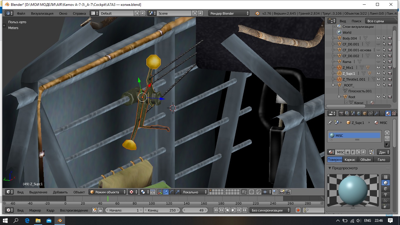 Отчет по работе с кокпитом. Пока занимаюсь "базой", неподвижными, не анимированными частями. Если по индикаторам работы мотора и полета, есть какая то информация, то по органам управления нет ничего, кроме ручки и педалей. Компоновка кабины то же не известна. Есть фото с снятыми панелями правого борта, где четко виден какой то баллон. Больше никакой информации. Придется что то фантазировать. Не смотря на то, что кабину собираю по чертежам (из МК) кабина почему то получается "тесной". Задняя часть пулемета буквально упирается в "лицо-камеру".