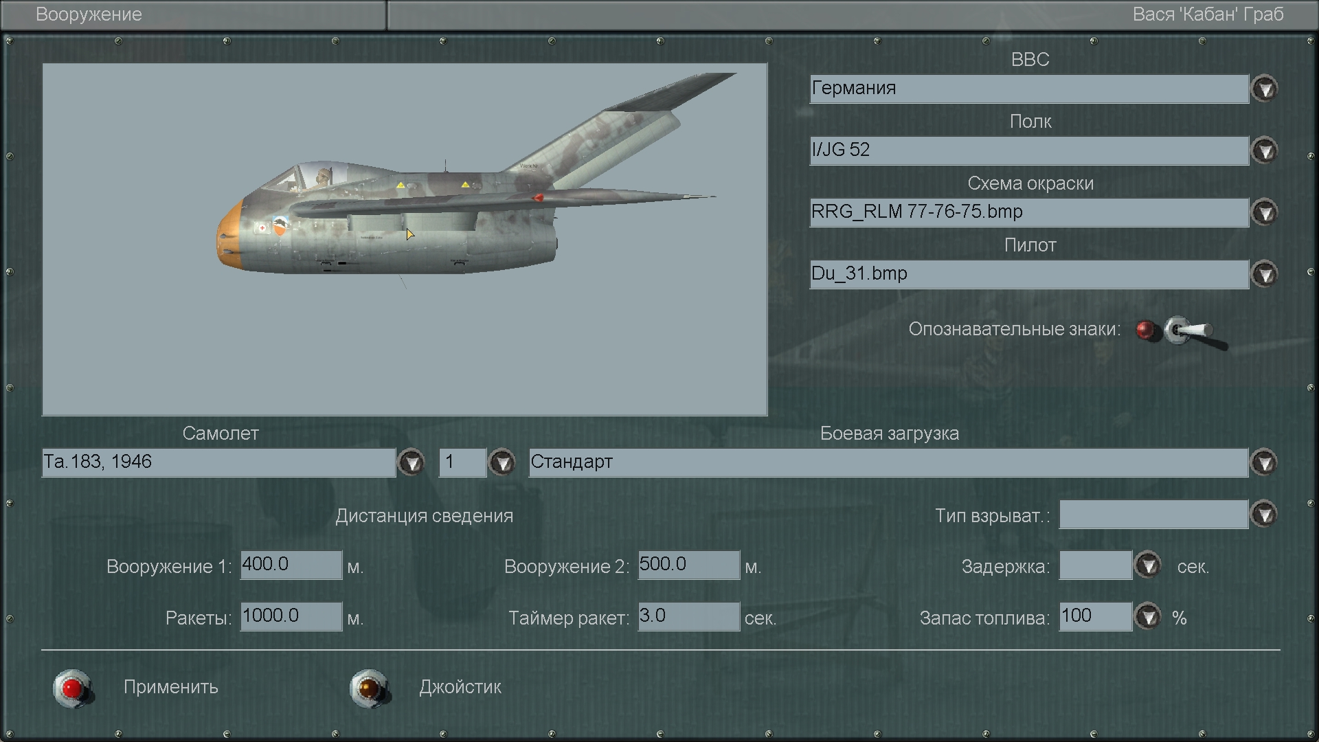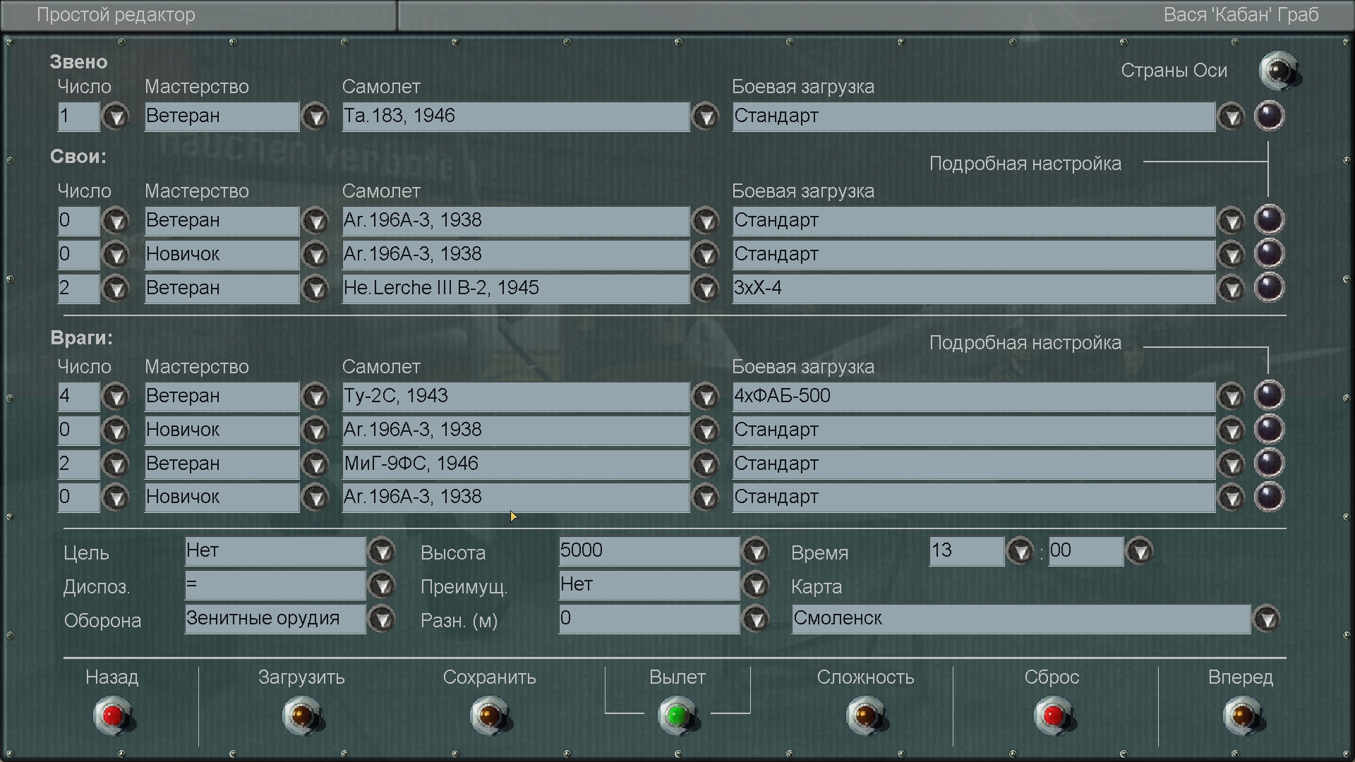 Дороги Войны, Заполярье и Западный фронт. Ставил сначала со скачанной в 2011 году сборки под 4.09. Сборка была не модовая - типа Золотой коллекции. Впн-ом качаю с яндекс-диска - оооочень долго - скорость 500-700 кб. в сек. Потом посмотрю в дефолтный конфиг и скажу что там написано. Всем СПАСИБО за отклик! ---------------------------------------- Собственно мне нужно было проверить обзор у некоторых самолётов, с которых не видно прицела вообще. Если получаться в последнем патче скрины - напишу вопрос по обзору. Последний раз редактировалось Vasya; 24.07.2020 в 00:29. |