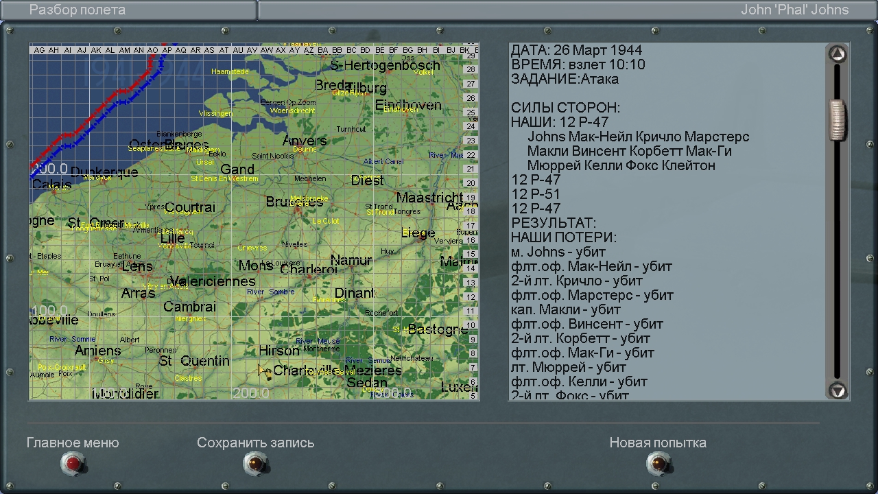 Вот забыл прошлый раз залить: - на первых двух разные звания перед одной и той же миссией - не третьем все пройденные миссии, чтоб ранее выложенные ошибки проверить. Тип самолета изменился перед вылетом на Рогань. - на 4-м-5-м бланкВПП на неподходящей по текстуре местности: кустарники.