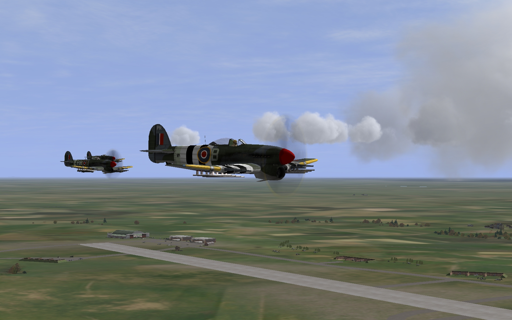 ![]() А здесь Тайфуны из 609-й эскадрильи возвращаются на аэродром В.53 Мервиль. Кстати, аэродромы у меня подбираются тоже не случайно - все эскадрильи базируются на реальных аэродромах (конечно если они есть на карте), и миссии перебазирования тоже приписаны к реальным датам. Да, насчет дат. Гарантировать я конечно ничего не буду, но думаю примерно к новому году выложить первую версию кампании.
