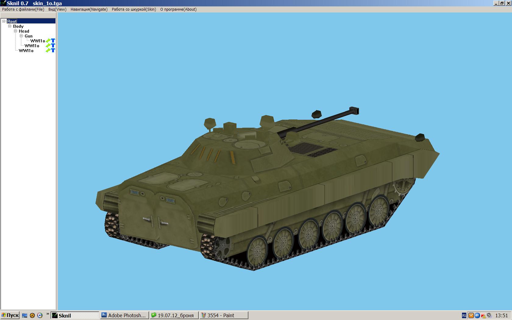 ![]() BMP2 сейчас находится в рабочем состоянии: ![]() ![]() ![]() Просто жду вниманием текстуры художника. Lebdenko или зверь, как я называю это приходит вместе, но было несколько вопросов, некоторые из которых я не могу найти решение. ![]() Был несоответствие некоторых областей, рычаги, поддерживающие колеса и задние ролики, которые мне удалось исправить: ![]() ![]() К сожалению, есть тень вопрос я полностью сбит с толку, статический в порядке, но движущиеся дисплеи автомобилей твердая тень и оба эти же сетки и текстуры. ![]() Здесь вы видите разницу: ![]() Я нашел способ, который несколько компромисса в том, что, если я устранил эти квадраты в сетке: ![]() Я остался с этим, что не показывает спиц: ![]() Я буду включать обе сетки в загрузке, так что вы можете сделать выбор, если не лучше, не будет найдено решение. Пистолет был следующий вопрос в том, что если бы я попробовал его в правильном положении все же был пожар на ту сторону, так что я убрал пистолет и башни и вращать его: ![]() Недостатком является то, что он может вращаться в структуру тела и огня через него. Существующий турель остается в положении здесь, и это второе, что на самом деле движется и стрельбы. Я пытался получить две пушки функционируют, глядя на Т-35 в игре, которая якобы имеет несколько башенки, но эй мину не работает в игре и просто стоит там, ничего не делая. ![]() Некоторые исследования и многое голова почесывания показало, что если вы удалите записи Gun_2, 3 и 4 из файла техники для T35 танк не будет затем двигаться и стрелять, но, к сожалению, никаких признаков второго пистолета стрельбы. Я использовал пистолет и Gun_1 для зверя, но, увы, не второй пушки стрельбы, но если вы поменялись местами записи в Фрахтователем вы могли бы иметь пушечным огнем с одной стороны или другой, проблема была одна турель будет двигаться, но пистолет на другой стороне будет стрелять. Одна из проблем, с наличием двух пушек, перечисленных в технике было то, что мой Лебеденко установить в качестве артиллерии могут быть размещены на карте но как только игра началась она исчезнет, WTF. В конце концов я остановился на один пистолет, одну запись. Конец зверя: ![]() Из того, что я читал кажется Лебеденко был только когда-либо использовали один раз и застрял и не осталось там до 1923 года, когда он был окончательно разобран на металлолом. Береги себя. Желаю вам всего самого наилучшего, Пит. ;