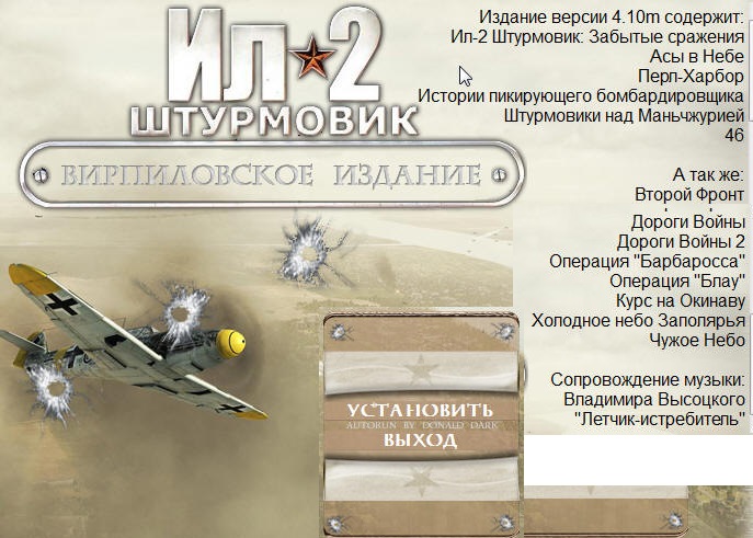 1.0R до 4.02+ всё, на то время, от VaV Alexey ISO образ https://yadi.sk/d/2qAQb-Jr3PfPTY При резке диска, обязательно обозвать DVD диск "disk2", такова причуда создания установщика от 1С, иначе не получится запустить установку, "ЗС", как бы с второго диска. При установке с жесткого диска, вроде не влияет. Только когда с болванки устанавливаете. 4.13.1, умещается на 1 ДВД диск. потом ставятся остальные патчи до 4.13.4 ИСО образ https://yadi.sk/d/6S0IzFpD3Pf9kE 4.10 на 1 ДВД. под Высоцкого. ИСО образ https://yadi.sk/d/d8lAe-2L3PfDw6 01 Патчи первые 1.21 https://yadi.sk/d/q-cmnMwce63pS 1.22 https://yadi.sk/d/5QgwoUbqe6463 1.22 (установка) https://yadi.sk/d/NYoVCID3A2KZ4 02 Патчи вторые 2.0 (установка) https://yadi.sk/d/4VcrIY293HvaFX патч 2.01 https://yadi.sk/d/xlrzALTSdMQd2 патч 2.04 https://yadi.sk/d/M2OEs0-5e64R2 03 Патчи третьи все 3.01 патч https://yadi.sk/d/yoWDpviO3PQDaG 3.02 патч https://yadi.sk/d/tjY4mSfh3PQDeL 3.03 патч https://yadi.sk/d/kuyrxRRd3PQDhs 3.04 патч https://yadi.sk/d/QKB_e1JB3PQDn6 04 Патчи четвертые 4.01 патч https://yadi.sk/d/H8cTXbr73PQAvo 4.02 патч https://yadi.sk/d/wH5fY23-3PQAwH 4.03 патч https://yadi.sk/d/K0fcu8aEi66SK 4.04 патч 1 ПФ 2 просто ру https://yadi.sk/d/_Ye1aKHB3PQBAM https://yadi.sk/d/4srqqunLHyVpH 4.05 патч https://yadi.sk/d/YhF5qVeN3PWQKN 4.06 патч https://yadi.sk/d/1yIvArY93PQBEU 4.07 патч https://yadi.sk/d/jlAZ75GB3PQBH3 4.08 патч https://yadi.sk/d/KDUsON19CAmen 4.09 патч https://yadi.sk/d/DbNYagWwCAnVv скинпак патч https://yadi.sk/d/lxJjtVExi5CM5 Бестселлер 4.09 https://yadi.sk/d/cb3zTq2brgJ3S 4.10 патч https://yadi.sk/d/BLwbSsQGCApA7 патч 4.10.1 https://yadi.sk/d/SX8UyjjqCApAm 4.11 патч https://yadi.sk/d/LxulTcYdCAp8B патч 4.11.1 https://yadi.sk/d/6WBiEKGXCAp98 4.12 патч https://yadi.sk/d/OYhDKU8l5wBeA патч 4.12.1 https://yadi.sk/d/JFPaZs7E7OfvA патч 4.12.2 https://yadi.sk/d/OYhDKU8l5wBeA 4.13 патч https://yadi.sk/d/r4y8WTtFh7E9K патч 4.13.1 https://yadi.sk/d/_AxJNmt_qpuDo патч 4.13.2 https://yadi.sk/d/FPE6qsoNsH97i патч 4.13.3 https://yadi.sk/d/snDgJxqq3CT6YS патч 4.13.4 https://yadi.sk/d/1jIDdb023GytNk торент файлы Все, от 1.0 до 4.13.1 никогда не монтирую образ, а просто РАРом распаковываю и запускаю с жесткого установку, или болванку режу 4.10 + всё с кампаниями. установка под Высоцкого "Я истребитель" 1 ДВД https://yadi.sk/d/2igFl7LE3PcCfo - 4.33 гиг 4.13.1 + всё с кампаниями. 1 ДВД - 4.27 гиг https://yadi.sk/d/l2m6giIl3PcEQb Последний раз редактировалось turliga; 17.12.2017 в 19:40. |