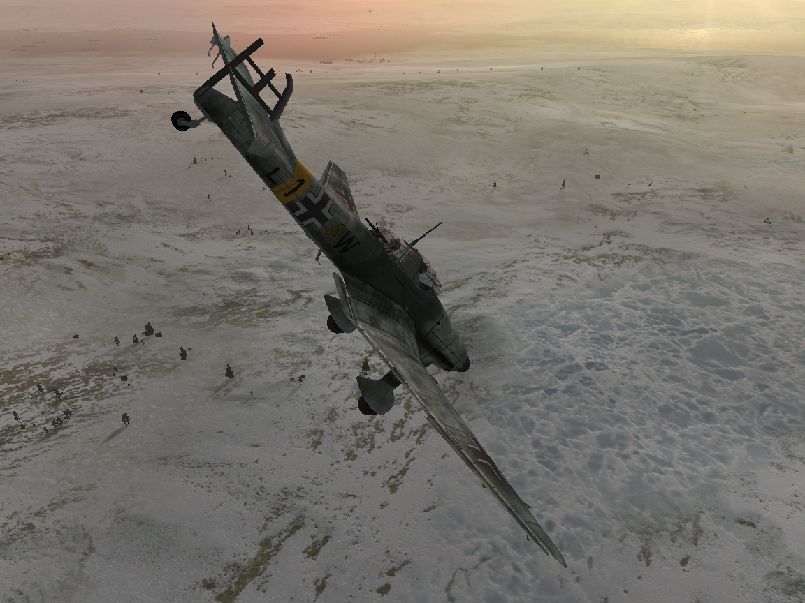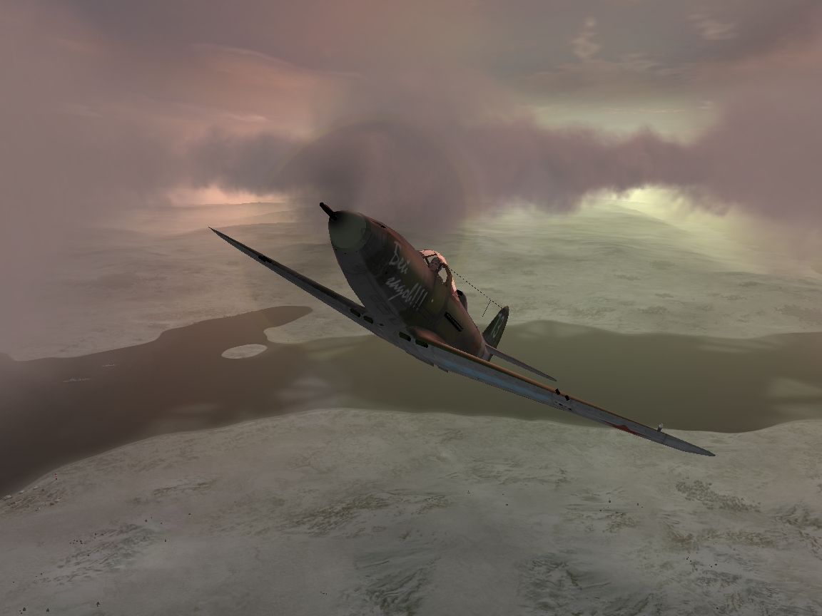Перехват пикировщиков. Опять похвалю за погоду и время миссии, подобрано очень удачно. Низкие облака, легкая пелена тумана, в просветах солнца, умеренный ветер – очень атмосферно! Наземка –зачетная! Даже линию фронта- видно! Идем в набор 8-кой «кобр», цель пикировщики. Надо мной конвой судов, которые я должен уберечь- зрелищная картина. Натыкаемся на вражескую «покрышку», причем идет не стандартная «лобовуха», а «элегантный реверанс» с обеих сторон. Пока выцеливаю «мессер» - один глаз на север-выискиваю бомберы. Пока бьемся на вертикалях замечаю: в просвете облаков 9-ка лаптежников «галатным» ромбом, с востока обошла нас. Спешу вдогонку -главное разбить вражеский строй и не допустить юнкерсы к кораблям. Нагоняю по диагонали, справа-налево, бью по замыкающим, средним. Не могу определить ведущего группы. Сношу «левого»-ведущего, причем до своей гибели -с бомбами никто расставаться добровольно не желает. Бью по «центральному» ведущему. Несмотря на повреждения и уклонения- он снова пытается возвратиться на свой курс. «Отрываю» крыло вместе с бомбой «правому» ведущему.. «Центровой» упорно ведет оставшихся к конвою. Уже открыли огонь корабли охранения… Настигаю и бью «центрального» уже над заливом. Фриц энергично уклоняется и огрызается, я уже не успеваю на следующий заход. По возможности аккуратно «выпиливаю» ему рули киля винтом. Все -движок стал, планирую к своему аэродрому, благо высота позволяет. Осматриваюсь: враги рассыпались, два оставшихся Юнкерса уходят в сторону Ура-Губы, боевую задачу я выполнил «Центровой» штопорит, но проявляя чудеса «аи» отойдя от конвоя километров на 10 все ж таки врезается в сопку. Экипаж почему-то не выбросился на парашютах, хотя высоты хватало. Я с перепугу «допетлял» до Ваенги-1 и благополучно приземлился. (Хотя запас высоты наверняка хватал дотянуть и до родного аэродрома). Одни положительные впечатления- дважды еще раз «перелетал» эту миссию. Skyfanу моя благодарность, здоровья и удачи в будущих компаниях. |