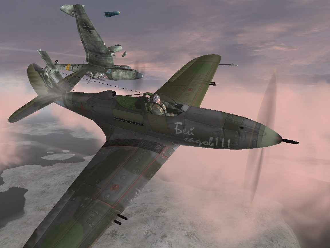 8 –кой взлетели, взял себе новый скин с двумя «семерками». Идем над облаками, ниже подопечные «пешки».( Skyfan к радиофайлам творчески подошел – это вообще отдельная тема) Подлетаем к Печенге, сквозь облака уже виден залив и само Петсамо. Сверху «мессеры»- не менее 8-ми. Наши пошли в атаку – немцы тоже. Южнее одна парочка мессеров заходят на боевой порядок Пе-2. Взял чуть выше и правее последних пешек, пропуская «гостей» слева вперед. Но 109-е уже с разворотом решили пристроиться мне в хвост. Самый хреновый момент. Кроме этой пары, все остальные истребители сплелись в бою и оттягиваются к Титовке. Внимательно слежу за ведущим BF-109, не пропустить бы момент атаки. Вижу- бросился сверху-сзади на меня. Взял резко вправо, затем резво на прежний курс, газ убрал, и легкий подскок вверх-вниз. Ведущий мессер на скорости проскочил меня, но его ведомый, к сожалению, не повелся. Ухожу со снижением в правый вираж, пытаясь сбросить и ведомого. «Пешки» пока бомбят Печенгу- вижу разрывы, немецкие зенитки долбят вовсю. На встречном курсе успеваю дать очередь по ведущему немцу, жаль попал не в мотор, а ему за «шиворот» в гаргот. Но 109-ый, не меняя курса, в длинющем пике врезается в сопки. Вот что значит–пушка крупнокалиберная! …Видать тяги рулей повредил ему. Пока 3 секунды радовался, оставшийся «мессер» пробил бак в крыле. Утечка топлива.. Прижимаюсь к земле, заманивая 109-ый - быстрее бы развязка, в догонялки с ним играть бесполезно. Подлавливаю момент, «раскачиваясь» на бреющем, «пропускаю» сверху 109-й и уже сам прижимаю его к земле… …Оглядываюсь по сторонам: с Печенги зенитки задолбали -бьют по мне со всех стволов. А где же «пешки»? На отходе, возле меня не пролетали же. А они, оказывается, собрались далеко западнее Петсамо и повторно нанесли удар. Кстати одну зенитную батарею накрыли красиво полностью! В общем запоминающийся и нелегкий бой! К сожалению и наших истребителей вернулось только трое. Зато хоть среди «пешек» потерь не наблюдал Домой я тоже не дошел- кончилось топливо –сел на вынужденную под Ура-Губой, причем умудрился подломить «носовую» стойку шасси, винты-на кизяк. P/S/ Сомнения относительно FW-200 над Полярным. Уж слишком «жирный гусь» и маркировка JG-5 «прилипла» к нему случайно |
