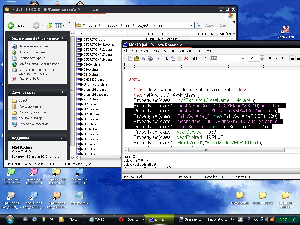 О Моранах дальше: Попытка сделать из Морана отдельный мод с пропиской страны Германия или Финляндия - не увенчались успехом. Что делал? Вытянул 3До МС410 из первой сфс-ки и обозвал его сначала MS-410, потом MS-410(Multi1) и прописка в класс нового названия 3До выбивает Ил на 70-ти проц. загрузки. Скрин джава-файла внизу. Менял все восемь мат-файлов Overlay.mat на такие же из планеров ФВ-190 или БФ-109, но успеха так же не принесло - всё теже 70 проц. и крах на рабочий стол. Номера паинтов так же менял: от 01 до 06. Лог внизу. Ил понимает в классе(копии МС410) Морана только такую запись: Код: