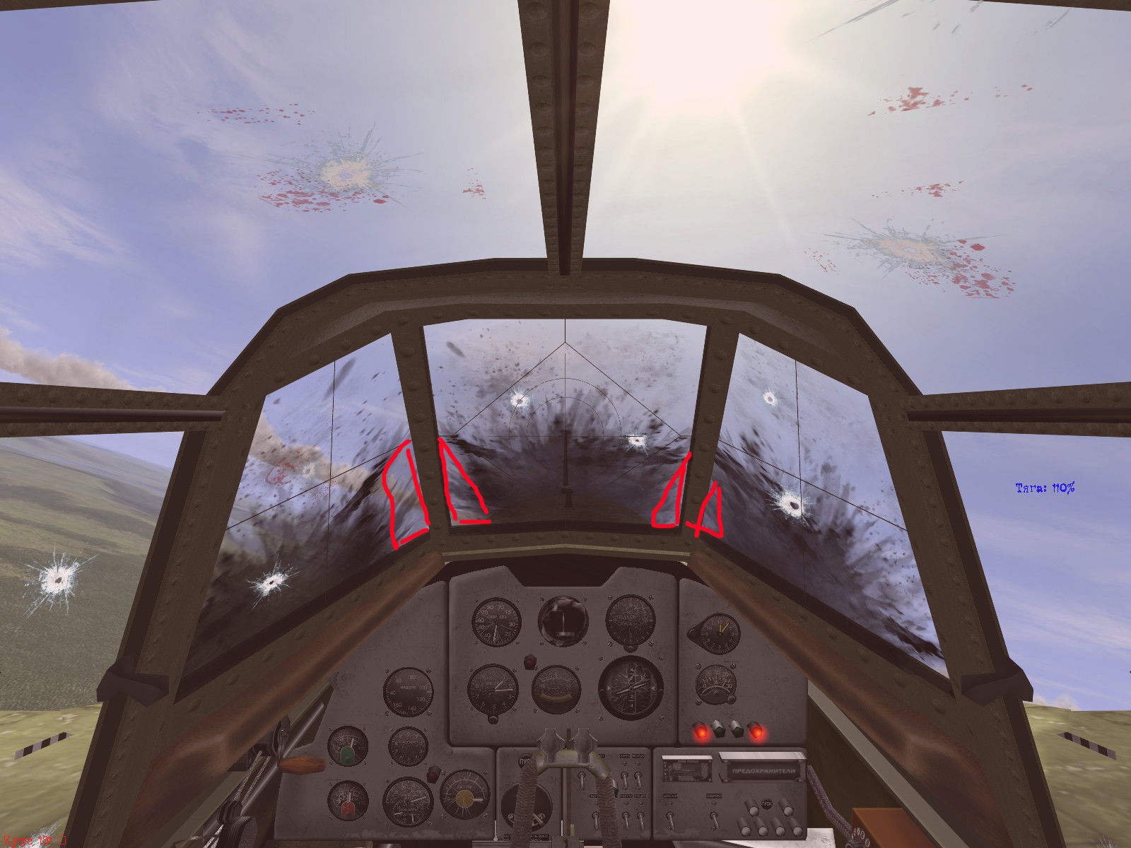Ещё один момент по вспышкам пушечных попаданий: в реале они очень "быстрые", короткоживущие; в стоковом Иле они длятся довольно долго. Конечно, "быстрый" вариант с т.з. реалистичности предпочтительнее. Но! В силу неких особенностей в бою короткоживущие вспышки не всегда видны, они заметны только постфактум, по облачкам дыма. Поэтому время жизни вспышек лучше всё же немного удлинять, где-то на 0.1 сек. Хотя, конечно, не до такой степени, как в дефолтном Иле.