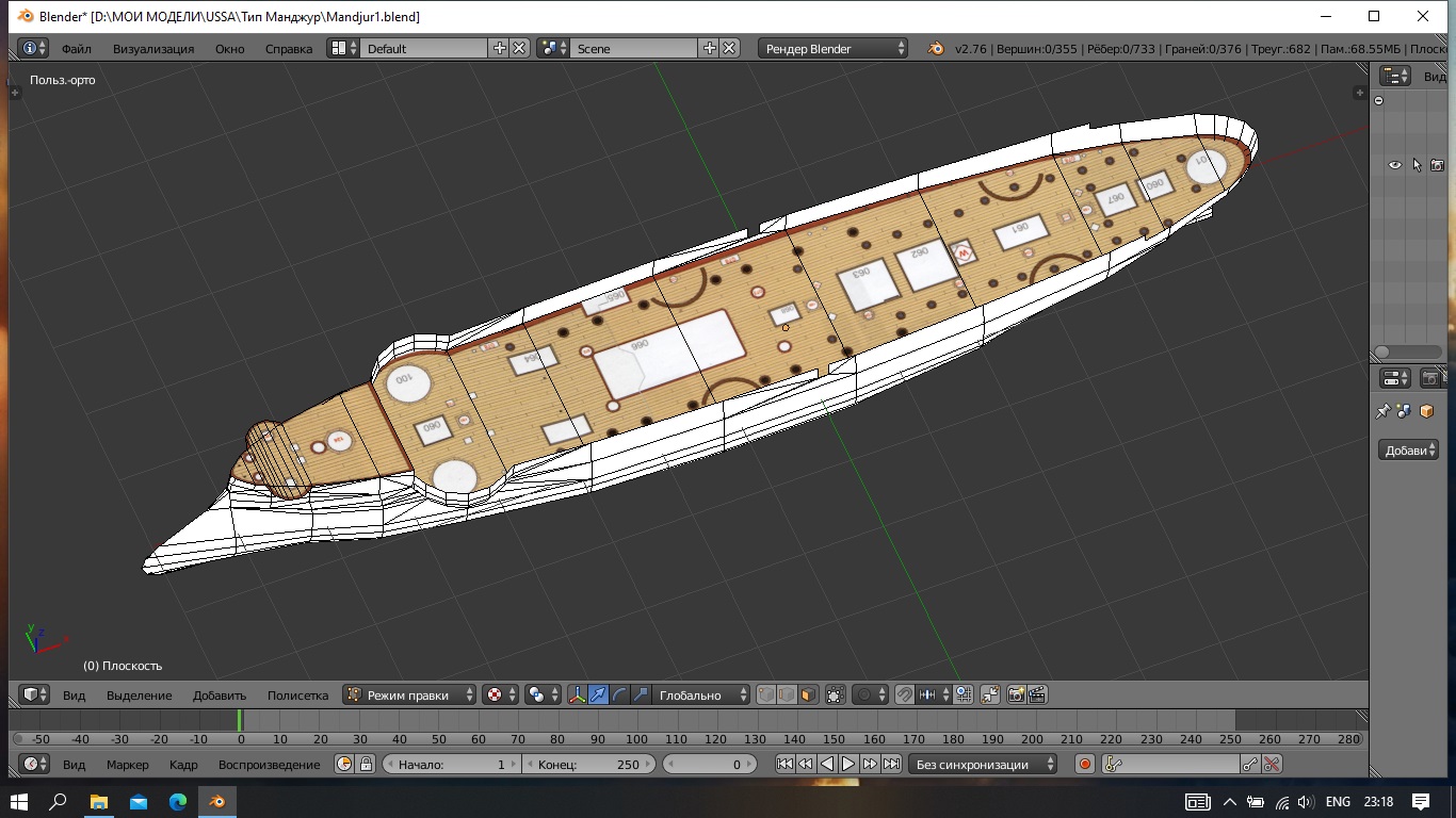 Текстурирование. Палуба ради удобства работы опущена ниже чем на чертеже. Поправлю позже.