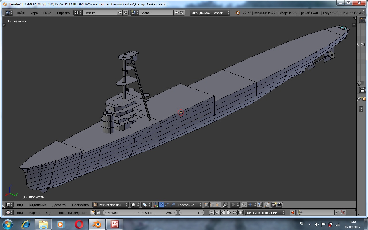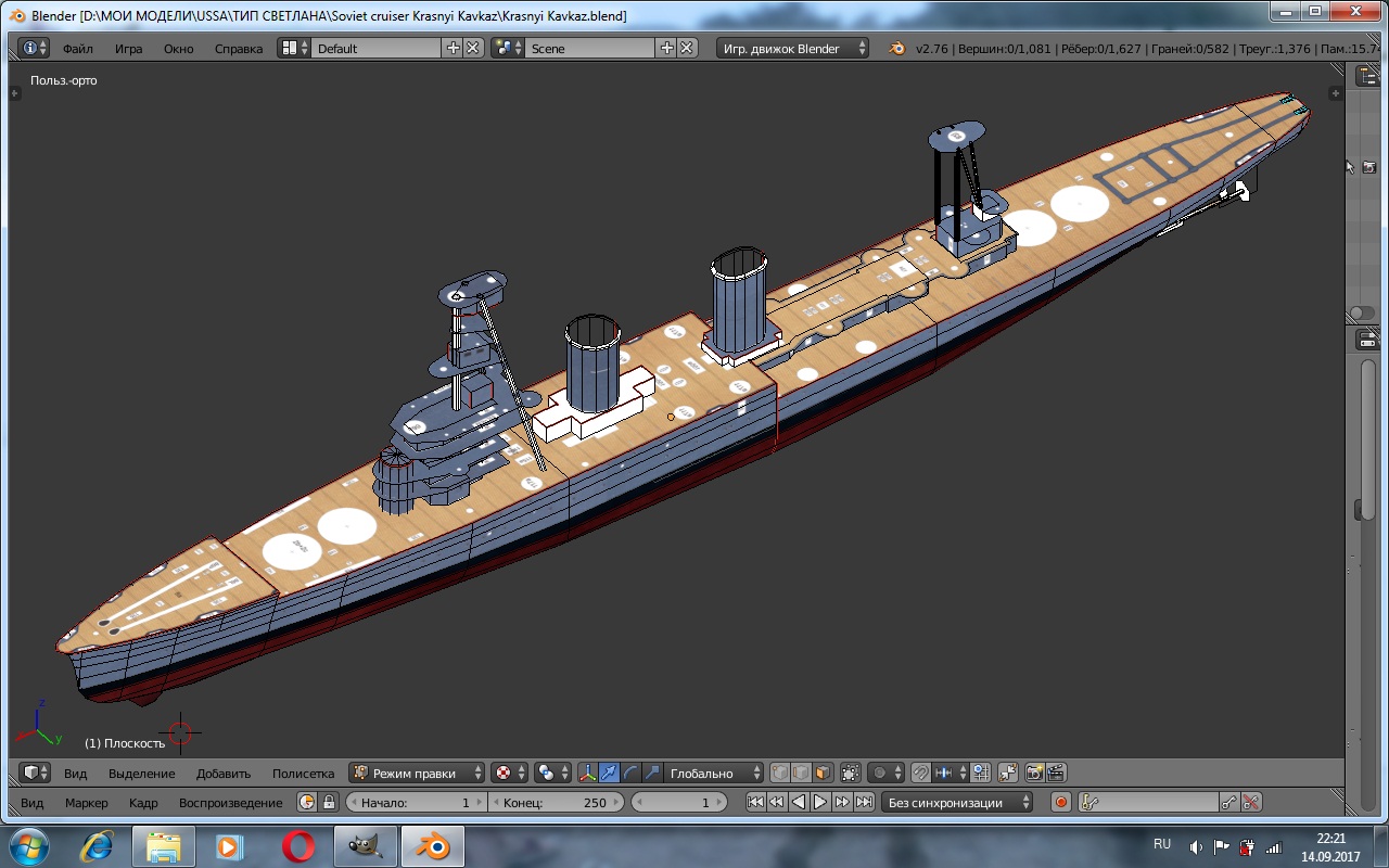 Оказалось с "Кавказом" работать проще чем с "Крымом". Сканы "Бумажного моделирования" позволяют создавать точные детали одинакового масштаба, многократно снижая вероятность ошибок. Детализация модели тоже выигрывает. Планирую делать палубы и мостики двусторонними с верхней и нижней сторонами, количество текстур возрастет, но и "внешность" кораблика должна улучшиться. При такой методе, можно создать хорошие текстуры теней, блендер создает их сам. Есть и проблемы, но больше исторического плана, например форма палубы и расположение первой пары автоматов 70-К за второй дымовой трубой. А еще не известно как лягут "скановые" шкурки... В общем работа движется. Всем мира. |
