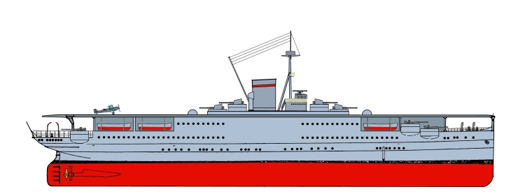 Пока мы ждем модель "Чапаева" открою еще один, очень не спешный проект. На сколько я понимаю, это был самый первый, относительно реальный проект советского авианосца (даже эскизы есть). Этот проект, представляет собой переделку учебного судна Океан(Комсомолец) в авианосец. Проектом предусматривалась замена родных котлов на котлы от "Измаила", установка навесной палубы и острова по левому борту. Для сохранения остойчивости, предпологалось наварить були, играющие роль противоторпедной защиты. Авиагруппа планировалась в 42 машины (26 истребителей, 16 штурмовиков). Артиллерия: 16—102-мм универсальных орудий в спаренных установках, 10— 40-мм зенитных автоматов в двух пятиствольных установках. К сожалению отсутствие средств не позволило реализовать этот проект.