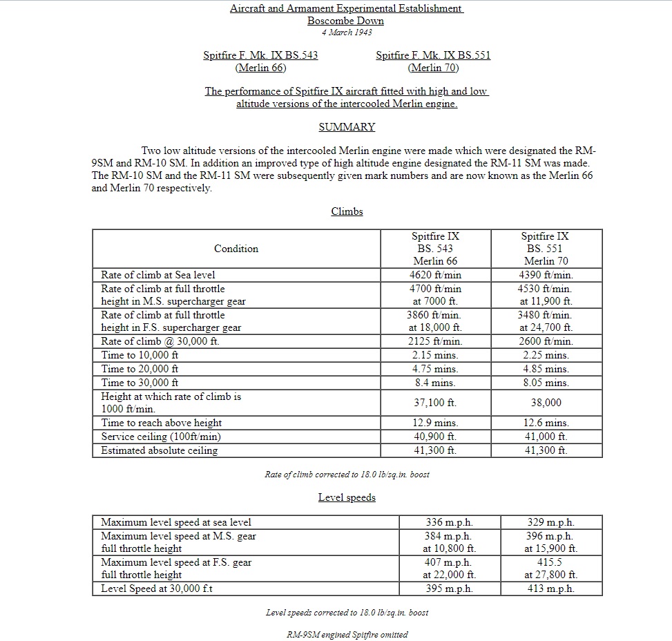 (Спит. МК-ІХС 1943 года.) У земли 504 - 541. Почти по паспорту испытаний. Скорость сваливания было выставил 170 км. в час, но самолёт стал упираться на вираже, пришлось немного снизить. На малых скоростях тяжёлая колымага, которая переваливается с крыла на крыло и здорво проседает. При сбросе скорости на маневрах у земли вертикальный маневр откровенно слабый. На номинале 6000 метров набор высоты больше чем 6.5 минут, что больше чем по таблицам испытаний. Возможно не правильно мерял - на скорости набора по прибору 310 км. в час. Есть так же погрешности иловского общёта работы ВМГ. Если на номинале выставить скорость 510, то на форсаже будет уже более 550 км. в час, что таки больше документов испытаний. Пришлось идти на небольшой компромис в балансе скорости и скороподъёмности на разных режимах двигателя. Приятных полётов! ------------------------------------------------------------------- Архив с фм Спита МК-9С обновлён. Удалось подтянуть скороподъёмность почти до паспортной. 5000 метров на номинале должен набирать мение чем за 5 минут. Скорость набора 270-280 км. в час по прибору.