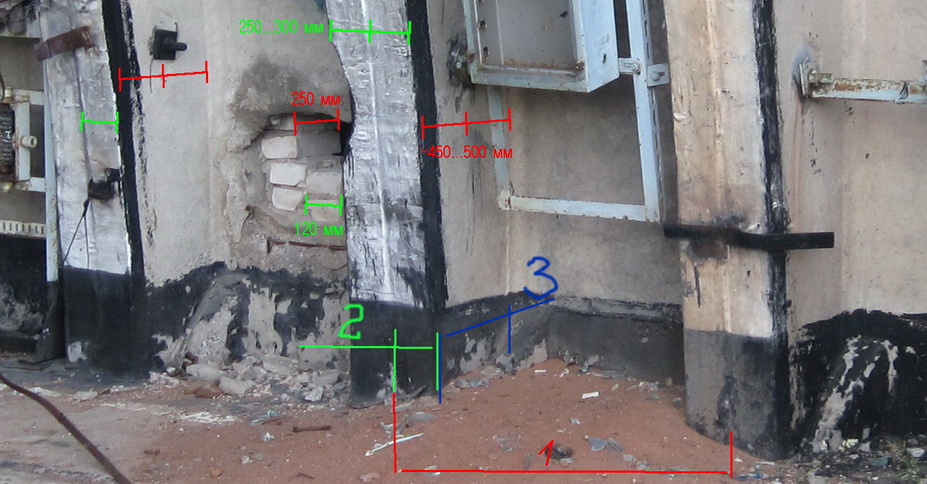 Арочное укрытие (арочное обсыпное сооружение) типа 2А/13 предназначено для защиты авиатехники на аэродроме от поражающих факторов средств поражения противника. Представляет собой железобетонное сооружение (укрытие) для стоянки, технического обслуживания, снаряжения, заправки и запуска двигателей самолётов МиГ-21, МиГ-23, МиГ-27, Су-17, Су-24 и других - схожих размеров, а также любой другой крупногабаритной техники. Имеет размеры 12,9x28 м, толщину стен в 60 см и оборудовано газоходом, с отдельными воротами, предназначенными для отвода газов из сопел самолёта в случае запуска его двигателей в арочном укрытии. Кроме того, снаружи укрытия покрывает земляная обсыпка солидной толщины, обкладывавшаяся дерном и превращающая сооружение в приличных размеров холм. Толчком к строительству таких укрытий в СССР послужил опыт Шестидневной войны 1967 года, когда выстроенные в плотную линию на открытых стоянках самолёты легко уничтожались напалмовыми и бомбовыми кассетами. В 1968-1984 годах построено 3800 арочных и других капитальных укрытий и около 100 земляных обвалований Фронтовой авиации, из них на аэродромах Групп войск - свыше 1500, на территории СССР - 2000. "Для истребителей и самолетов ИБА сооружались укрытия типа 2/11 и 2А/13. В последнем, ставшем наиболее массовым, можно было разместить МиГ-21/23/27, Су-7 или Су-17. Оно имело размеры 12,9x28 м и толщину стен в 60 см. Кроме того, снаружи укрытия покрывала земляная обсыпка солидной толщины, обкладывавшаяся дерном и превращавшая сооружение в приличных размеров холм." "Основной частью укрытий являлись сборные железобетонные арки с защитной грунтовой обсыпкой. Для свободного входа и выхода самолета служила передняя сторона арочного укрытия, надежно защищаемая двухстворчатыми откатными воротами, которые собирались из железобетонных панелей с песчаной засыпкой. Створки ворот перемещались на колесных тележках. Кроме того, обеспечивался запуск двигателя самолета непосредственно внутри сооружения для быстрого выезда машин из укрытий, которые, в свою очередь, были соединены рулежными дорожками с ВПП. Для этого в задней части укрытия имелся газоотводный канал, выходящий наружу и вбок. Задняя стенка укрытия, так же как и фронтальная часть и парапет для удержания грунтовой отсыпки, сооружались из обычных фундаментных бетонных блоков. Пол площадки перед укрытиями и рулежные дорожки к ним выкладывались из аэродромных железобетонных плит. Кроме того, в нишах укрытия хранился первый боекомплект (БК-1), два комплекта ПТБ и средства наземного обслуживания (СНО)" Считаем количество секций на приложенном к этому посту фото. Их 20. Выходит ширина секции ровно один метр. Теперь берем за основу следующее фото (ниже). Исходя из данных размеров при помощи хитрой проги с компа отца удалось установить следующее: Величина 1 равна 1000мм, величина 2 равна 13-15% от величины 1, величина 3 равна 38-40% от величины 1. Отсюда имеем 130-150мм и 380-400мм соответственно. При исполнении данной конструкции в масштабе 1:72 думаю отклонение на 0,2 мм особой роли не сыграет, поэтому наверное можно брать за рабочее 150 и 400 мм соответственно. По моему как то так. Думаю ваши выкладки недалеки от истины. Обобщая могу добавить, что скорее всего габаритные размеры сечения полуарки 1000 х 500 мм, толщина полки 150 мм вполне может быть, толщина стенки 100 мм, внутренний размер полки - 400 мм. так