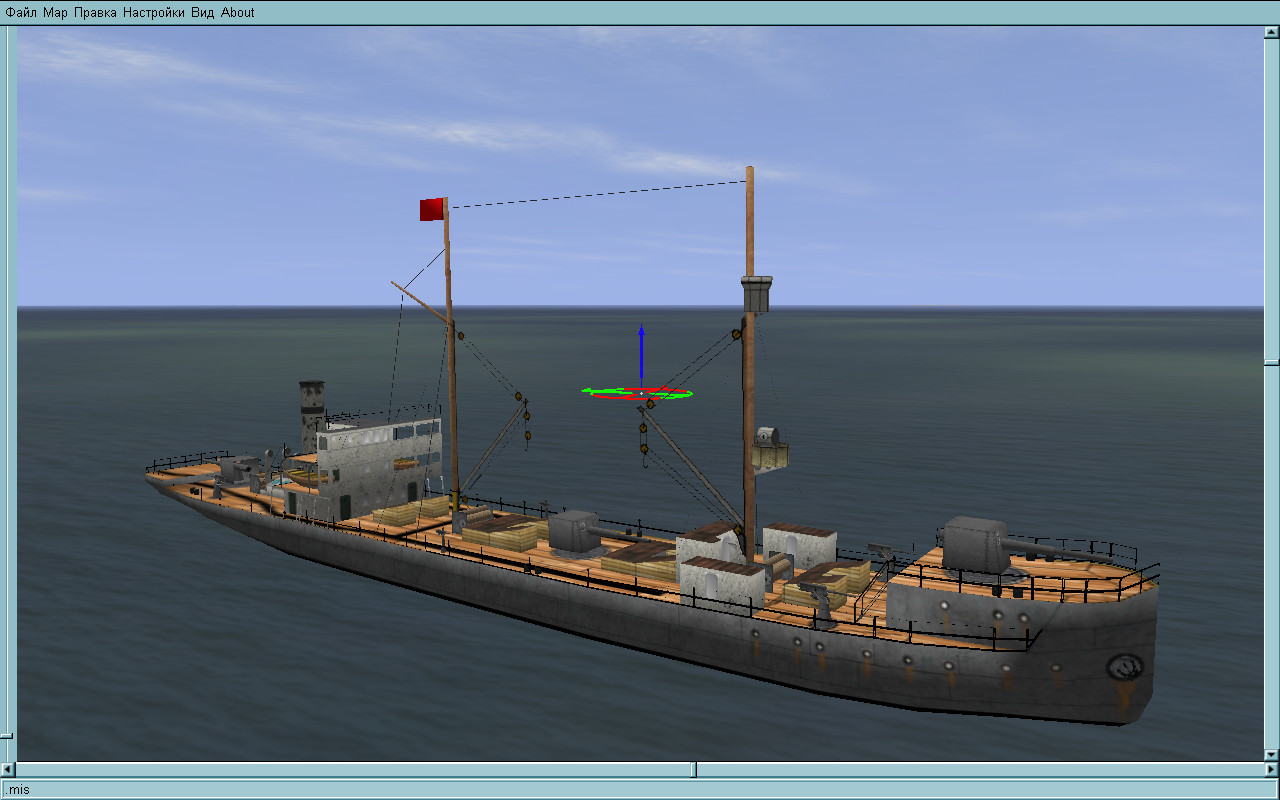 Проблемы с импортом из Блендера решены. Одним из косяков предыдущей модели, была не правильная визуализация "Эльпидифора" в окнах редакторов-объект. В окне был виден маленький фрагмент палубы, решил это исправить. В процессе поиска, в hier.him, обнаружил непонятно малые значения VisibilitySphere и CollisionObject sphere. Исправил, картинка поменялась в лучшую сторону. А при очередном тестовом расстреле модельки, выяснил-все коллизии работают! Выкладываю измененную модель, старую транклюкирую
