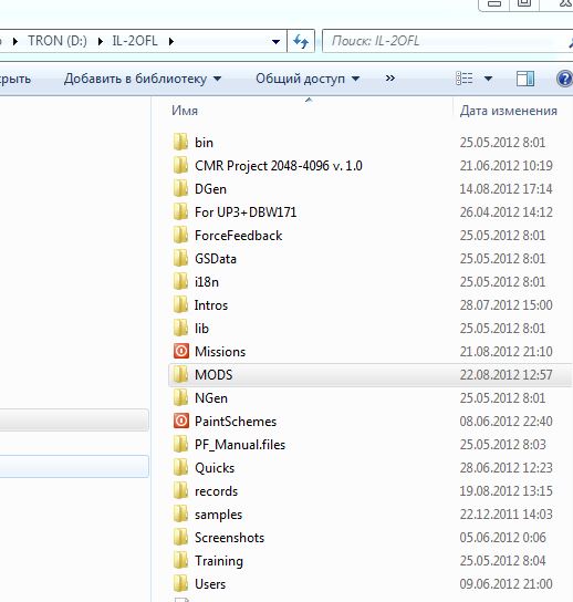 ODS папку с подпапками в корне ...Ил2 Штурмовик 1946/,