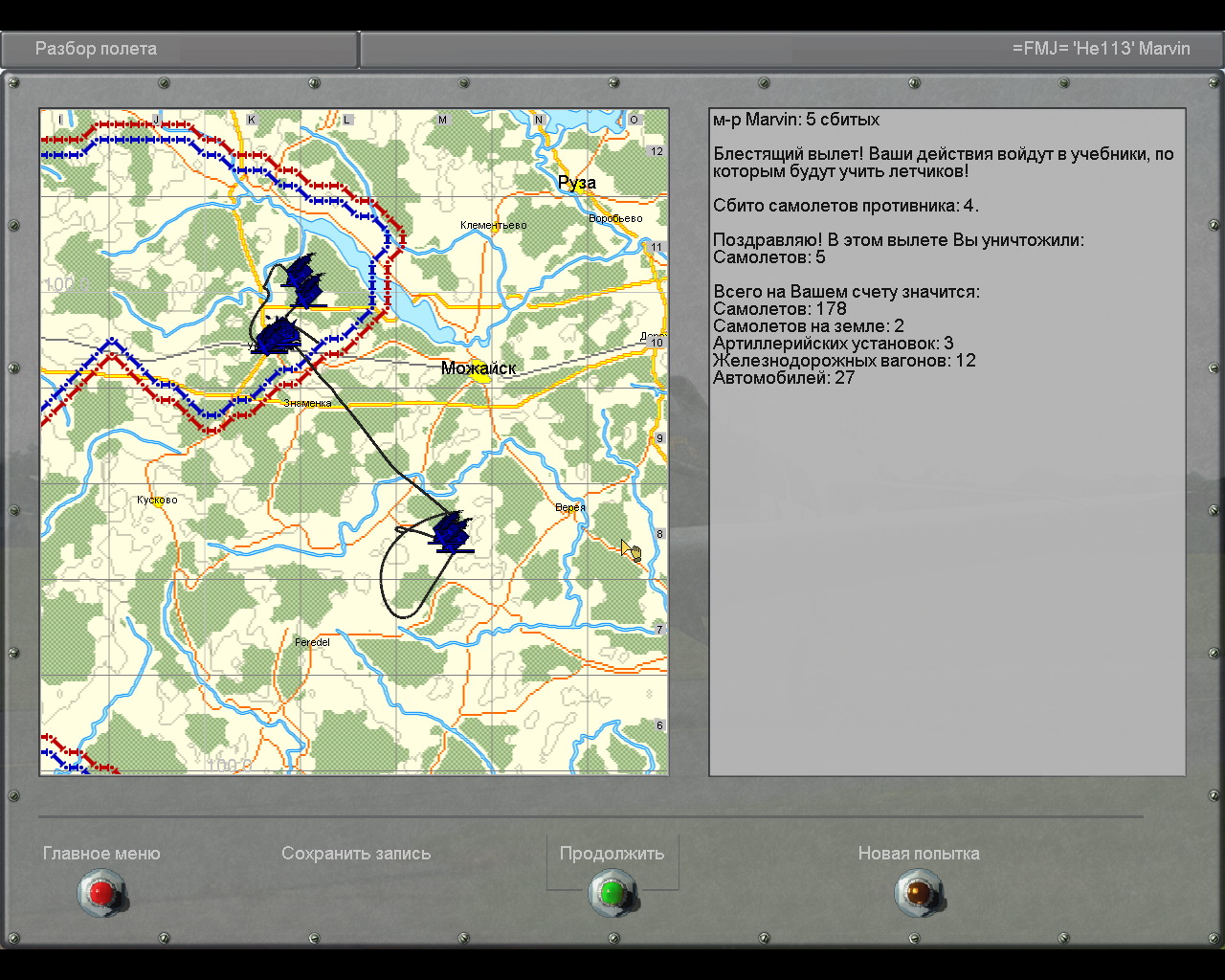 Немного не так... должно быть: Игрок - 7 сбитых, сбито самолетов противника 8...