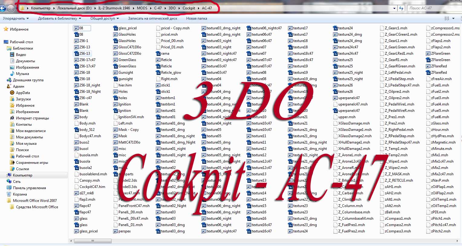Это вся структура моих папок с самолётом С-47, папки 3do папка Cockpit имеются схешами. Почему редактор не видит самолёт ?