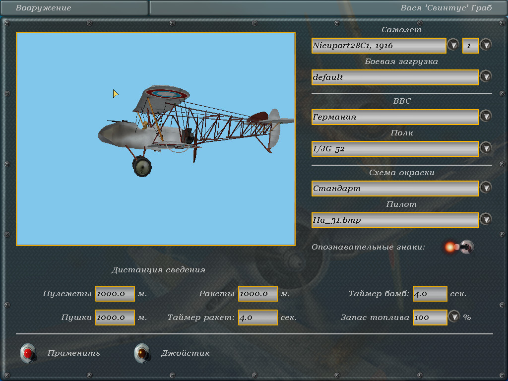 http://files.mail.ru/09HYJF вот просьба автора 101tfs о новом слоте : Hope someone can fix the bugs and make a slot for it. если есть желающие то помогите ибо это не только Ньюпор-28, причем со своим кокпитом !, но и Соптвич Снайп, Фоккер Д-5/8, на подходе Альбатрос-5.Фоккер Д-7, Соптвич 1/2 но без своих слотов и фм это только красивые франкелеты ! Последний раз редактировалось начпрод; 31.08.2012 в 17:52. |