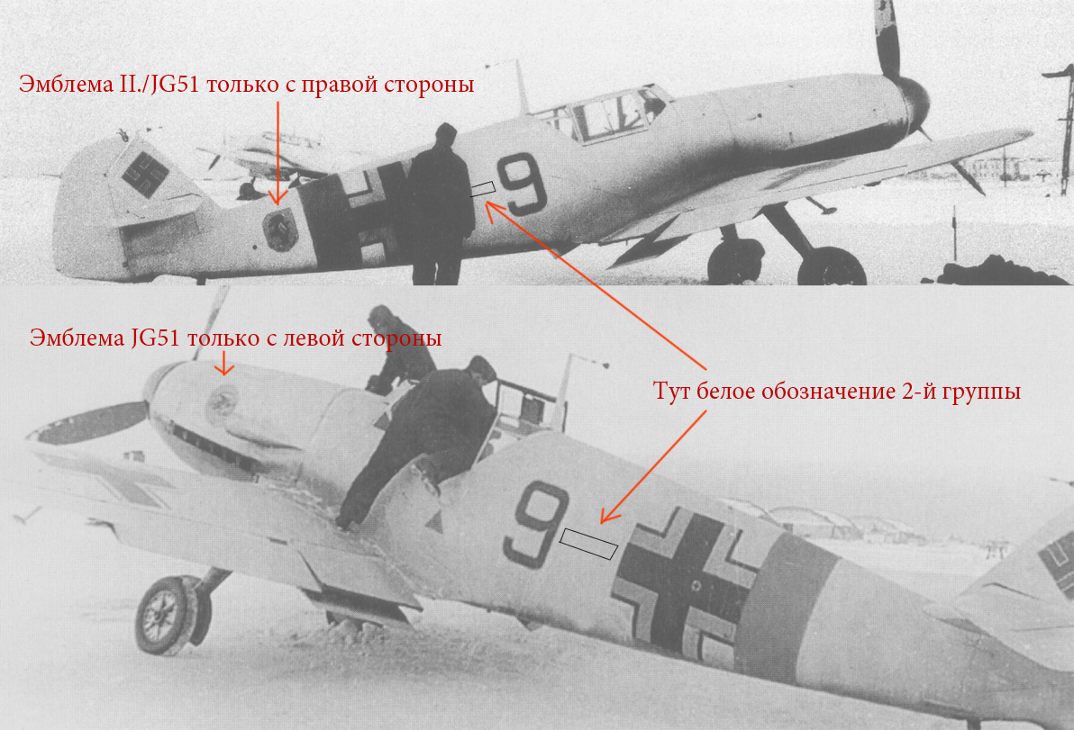 5) Кроме всего прочего, как я уже говорил, что в JG51 практиковалось странное размещение эмблем поэтому вариант мутноват, т.к. с большой долей вероятности выглядит так же, как и эта "9" из его штаффеля на 5-й фотке.