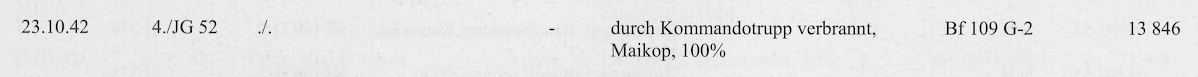 Итого, потери немцев от десанта на аэродроме "Майкоп" составили один сгоревший Мессер wnr 13846. Там ещё в тот день один Ю-52 на 100% разбомбили. С двух разных источников:
