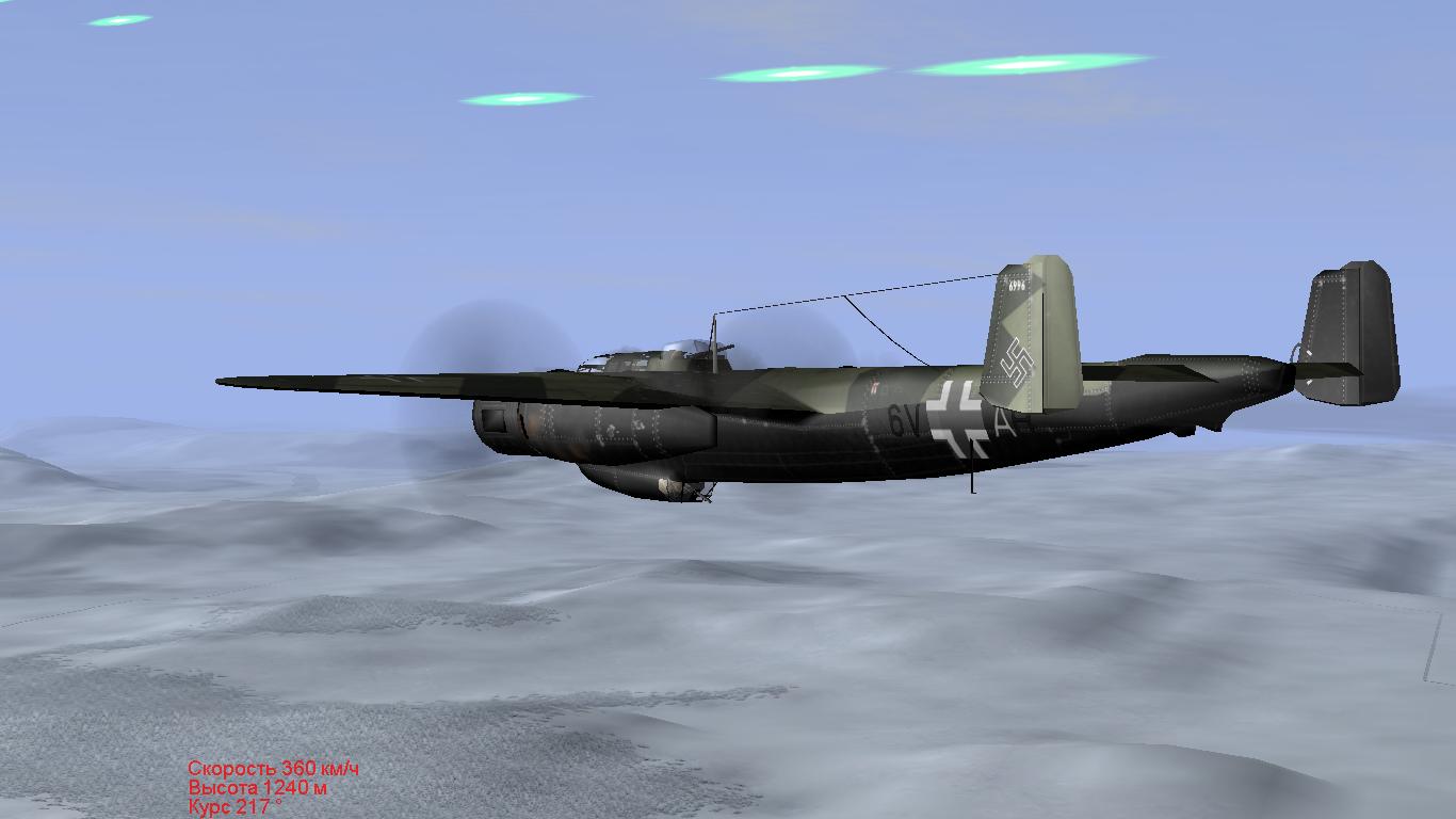 А вот интересно, кстати. Это тень от Дорнье с высоты хз сколько километров. И такая тень не только от До. Программно это сложно привести тень к реалистичному виду? Чтобы километров с полутора, скажем, он не отрисовывалась... И заслать в ДТ...