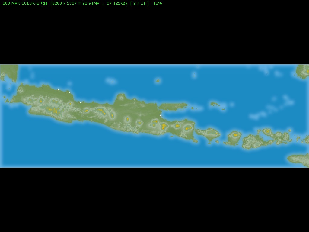 Java is huge- from west to east, 1000 km. As Java was quite developed, even in 1940, detailing the whole island is a LOT of work. Historically, the centre part saw no air action until March 4-8 1942, and then only a few air raids on Tjilatjap. In my opinion it is best to split Java into two separate maps and leave the central part between Cheribon and Semarang out, as it is unimportant; leaving the central part out would save a LOT of work. Plus, it would be better to include areas which WERE important in my opinion!