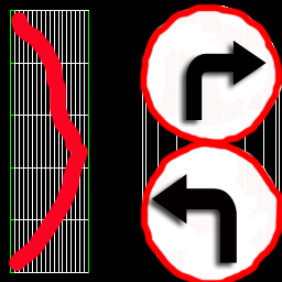 Вот подшаманил знак в фотошопе, примерно так должен выглядеть знак. Но нужен ещё тако же левого повората. Неплохо чтобы они были не круглые а пирамидой ( треугольник), и сделоть как минимум знаков.
