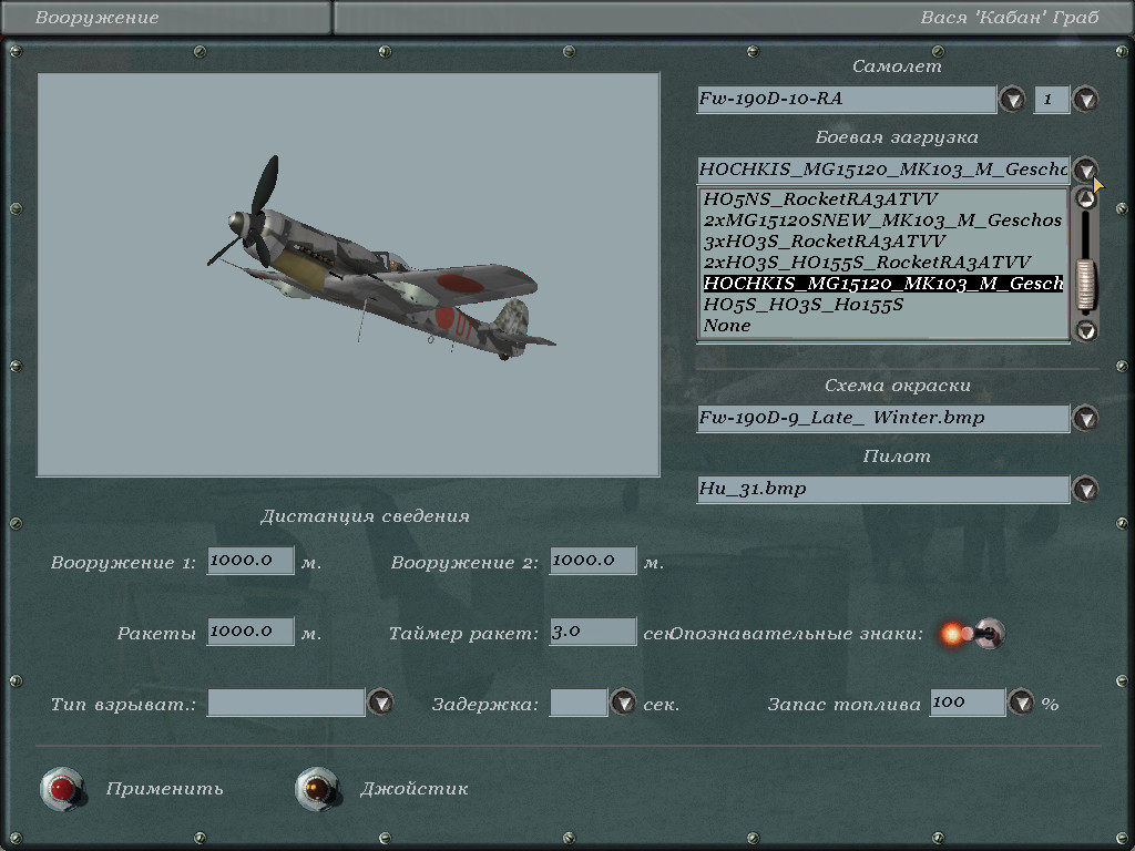 1. ![]() можно выбрать Дору-10 (сектор1), можно выбрать ее вооружение (сектор2), можно выбрать кнопку "вооружение" (сектор3) 2. при нажатии кнопки "вооружение" открывается следующая картинка: ![]() на которой видно что Дора 10 выбрана, ее вооружение то же, но при нажатии кнопки "настройка самолета" новая страничка не открывается и в результате при старте миссии видим это: 3. ![]() для просмотра кликнуть на картинку, откроется в полном размере, слева под картинкой будет "в полный размер" |