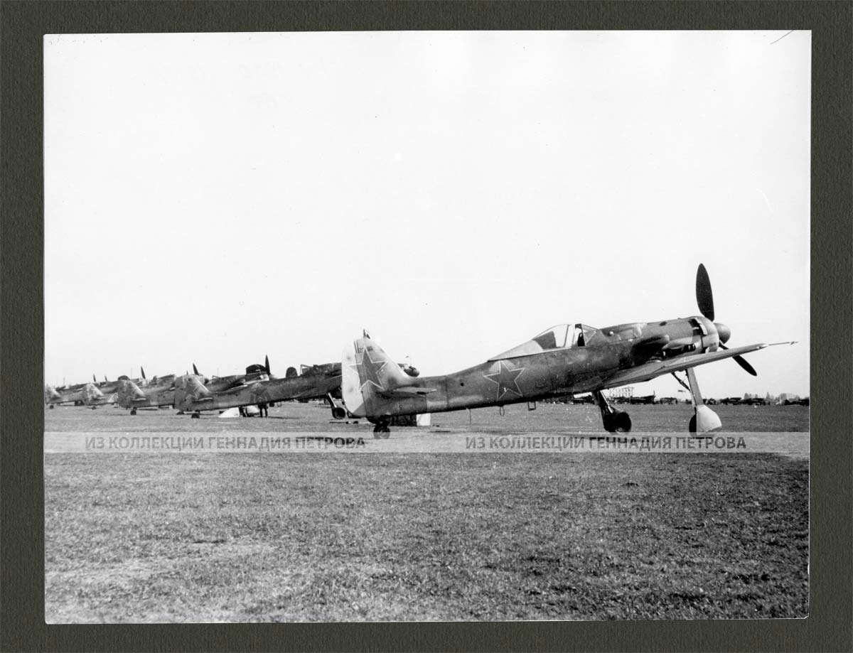 Трофейные самолеты Фокке-Вульф Fw190D-9 с опознавательными знаками советских военно-воздушных сил. Вскоре после капитуляции Германии шесть Fw190D-9 в полностью исправном состоянии были обнаружены на заводе Фокке-Вульф возле Мариенбурга в Восточной Пруссии. Самолеты были переданы 2-му Гвардейскому истребительному авиаполку 322-й авиационной дивизии.