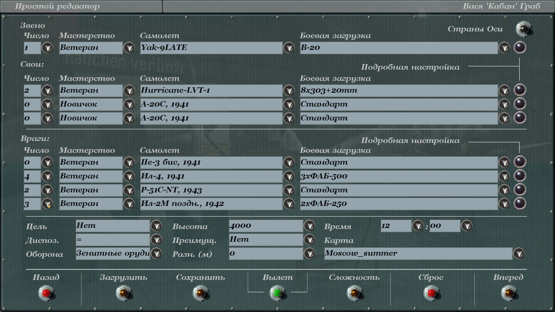 Как только помещаешь в простом редакторе на третью строку в противники Ил-2 или СБ первых серий, то при достижении ими точки сброса бомб игра вылетает на рабочий стол. Лог. Код: