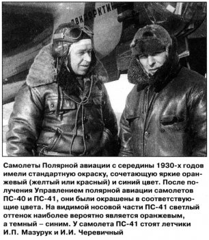 История приобретения по крайней мере двух из них является весьма необычной. С началом советско-финляндской войны в декабре 1939 г. из числа полярных пилотов и опытных летчиков ГВФ была образована специальная группа под руководством И.П. Мазурука. Группа действовала на самолетах СБ в сложных метеоусловиях и по ночам. В конце кампании командир группы Илья Мазурук предложил «присвоить» пару СБ для последующего использования их на Севере. Согласно рассказа участника событий, известного полярного штурмана Валентина Аккуратова, два СБ после окончания боевых действий перегнали в Москву, где их срочно перекрасили в оранжевый и синий цвета. Такая окраска, принятая в Полярной авиации, позволяла хорошо различать самолет на фоне белого снега в случае вынужденной посадки. Дополнительным внешним отличием этих самолетов стала рамка радиокомпаса над кабиной штурмана и нестандартная стойка радиоантенны. 22 февраля 1940 г. оба самолета СБ были зарегистрированы с бортовыми номерами УПА ГУСМП как ПС-41СССР-Н304 и ПС-41СССР-Н305. Еще один СБ — официально полученный как ПС-41, заводской № 20/249, бортовой СССР-Н312 — Управление полярной авиации получило в октябре 1940 г. Поначалу данные три экземпляра предполагалось использовать для ледовых разведок в северных морях и для скоростного сообщения с полярными зимовками. Однако на практике оказалось, что СБ требует наличия хороших аэродромов, поэтому машины числились в московской группе особого назначения (МАГОН) УПА и использовались в основном для тренировочных полетов. С началом войны приказом Наркома Военно-Морского флота № 00180 от 10 июля 1941 года была сформирована 2-я авиагруппа ВВС ВМФ под командованием И.П. Мазурука. Все 3 ПС-41 вошли в состав этой авиагруппы, насчитывающей 16 самолетов. Во второй половине августа 1941 г. 2-я авиагруппа приступила к воздушной охране западной части Северного морского пути. В том же месяце авиагруппа вошла в состав вновь сформированной Беломорской военной флотилии. В зимнюю навигацию 1941/42 г. самолеты группы вели ледовую разведку для обеспечения боевых операций кораблей Северного флота и Беломорской флотилии. В ходе войны УПА ГУСМП получило и использовало еще один ПС-41 — СССР-Н365 — этот самолет выполнял разведку ледовой обстановки в Белом море вплоть до лета 1945 г. Впоследствии машину передали Наркомзему (Народному комиссариату по землеустройству) и следы ее затерялись. По http://pro-samolet.ru/samolety-sssr-...-ps-41?start=1 21 ноября 1932. Сельскохозяйственная авиация из ведения Наркомзема СССР передана ГУ ГВФ. http://www.svavia.ru/info/lib/ist2.html К тому же Наркомзем - Народный комиссариат земледелия. Где-то я встречал это выражение в переносном смысле - "черный" юмор того времени. "Передача в Наркомзем" означала аварию или катастрофу самолета. Это, конечно, только предположение. http://www.polarpost.ru/forum/viewtopic.php?t=558 С уважением. Последний раз редактировалось SkyFan; 09.04.2013 в 01:58. |