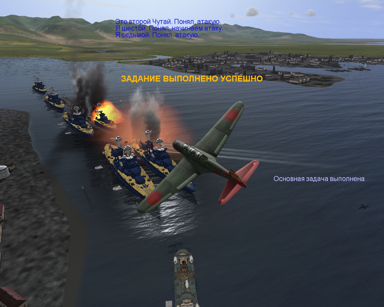 Миссия "Налёт на Перл-Харбор. Вторая волна" на D3A1. Обстановка в гавани воссоздана на основе фотографий. К сожалению, ввиду накладываемых игрой ограничений там нельзя размещать движущиеся корабли, поэтому линкор, изображающий "Неваду" остаётся неподвижным на фарватере.