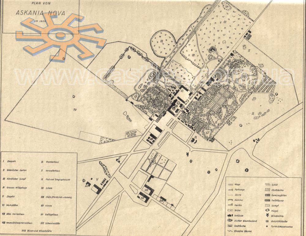 ЗЫ: Смотрел книгу воспоминаний Фальц-фейна с фото, там все в основном о дворце в Преображенке (на скрепке, но в книге почему-то названо Красный чабан (возле Перекопа - ?)) и доме в Хорлах (там и порт, и все остальное). Справа на плане 1920 под дендропарком - суконная фабрика, мериносов пасли и стригли, там же где-то и электрогенераторная станция. Практически ничего там из старого, кроме пары-тройки одноэтажных зданий лабораторий не осталось, со спутника в основном все - новострой 50-х. Церковь - новострой 90-х. Хрен поймешь, где усадьба барона стоит.