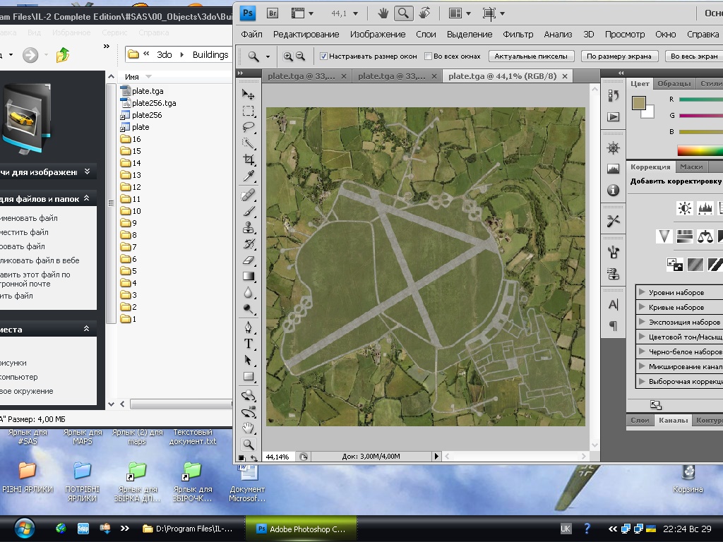 Я знаю/догадуюсь про такое(по вашей ссылке) - реальное отличие аэродрома и окружающей месности., поэтому делаю текстуры в двох вариантах: просто филд с прочерченными полосами и дорожками и уже заметный с растояния - с другой текстурой. Если сделать как в реальности(похоже в общем), то в иле это очень контрастирует и режет глаза - думаю, чего-то похожего на реальность и хотели добиться делатели филдов в объектспаке, но, к сожалению, видимость и котрастность в игре и реале имеют большую разницу(так же восприятие окружающего мира), поэтому, думаю, нужно приспосабливаться - подбирать по кольору в соответствии с окружающими филдами, хотя саму текстурку на аэродром можно поставить и другой фактуры, но той же гаммы что и филды/поля всей карты. Я так думаю, хотя на вкус и цвет... как известно, все мы не много разные., то что показал и написал - это просто я так вижу, но если есть замечания, я готов выслушать/прочитать, ведь я не профи в "рысовании" в фотошопе. |