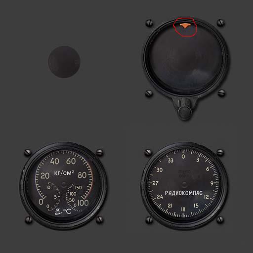 Сам самолётик подвижный, это и есть курс самолёта. Стрелка застывшая на 2 это и есть радиокомпас, стрелка подвижна на все 360 гр. шкалы. То что С взята в красный треугольник это для того что бы летчик беглым взглядом по приборам смог быстро определить и найти букву С на шкале. Внизу под шкалой рукоятка кремальеры, для попраавки компаса.