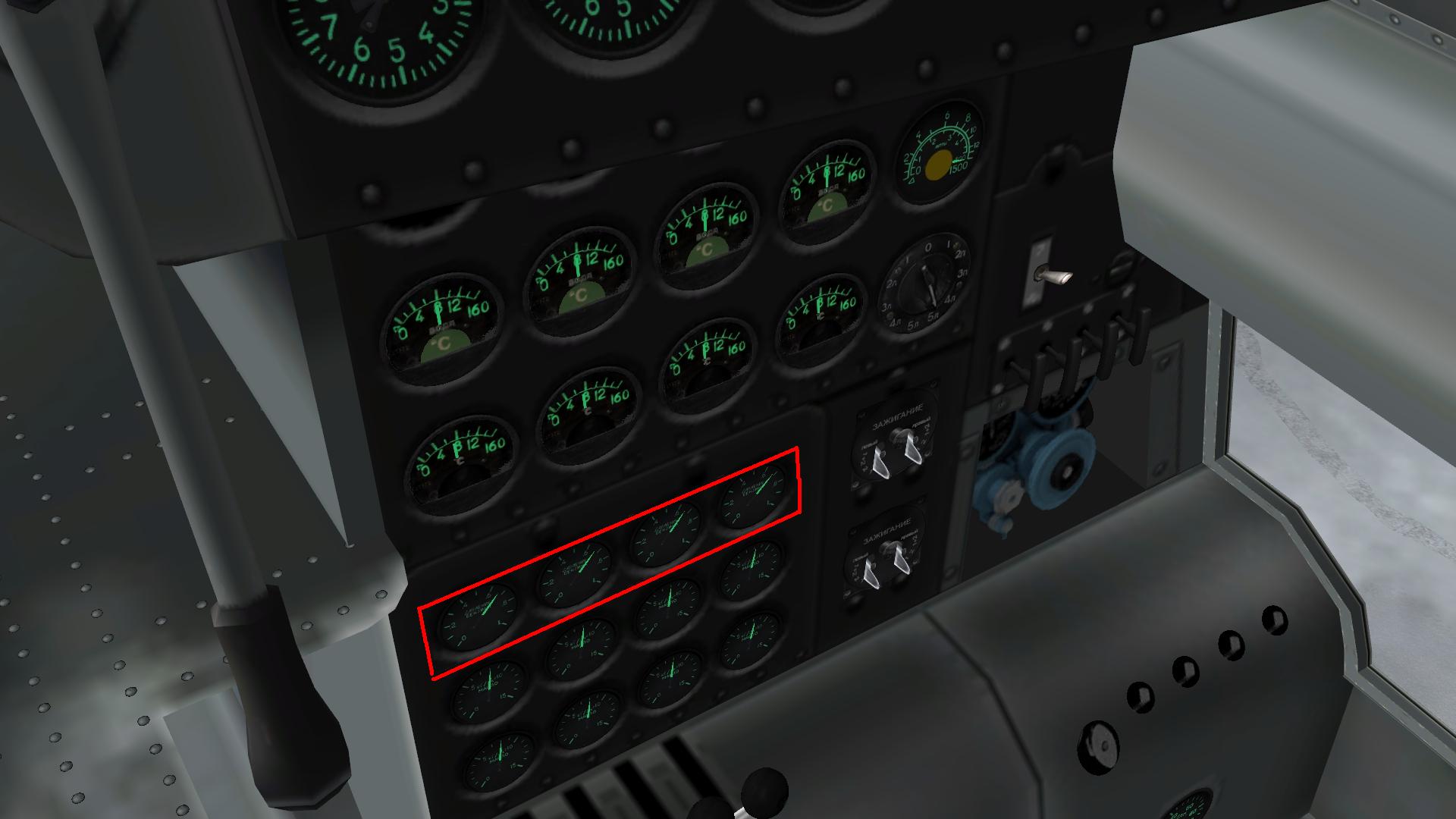 Приборы, те, что в красной рамочке - показывают температуру топлива в системе охлаждения, согласно того же документа. Насчёт температуры запуска. А запустятся движки на полосе, если на карте поставить -60? Скорее всего, запустятся. Так же, скорее всего, они и запустятся через полчаса после остановки в воздухе. И не важно, что при этом будет на приборах с надписью "Вода" и "С". Хотя я не проверял, честно говоря.