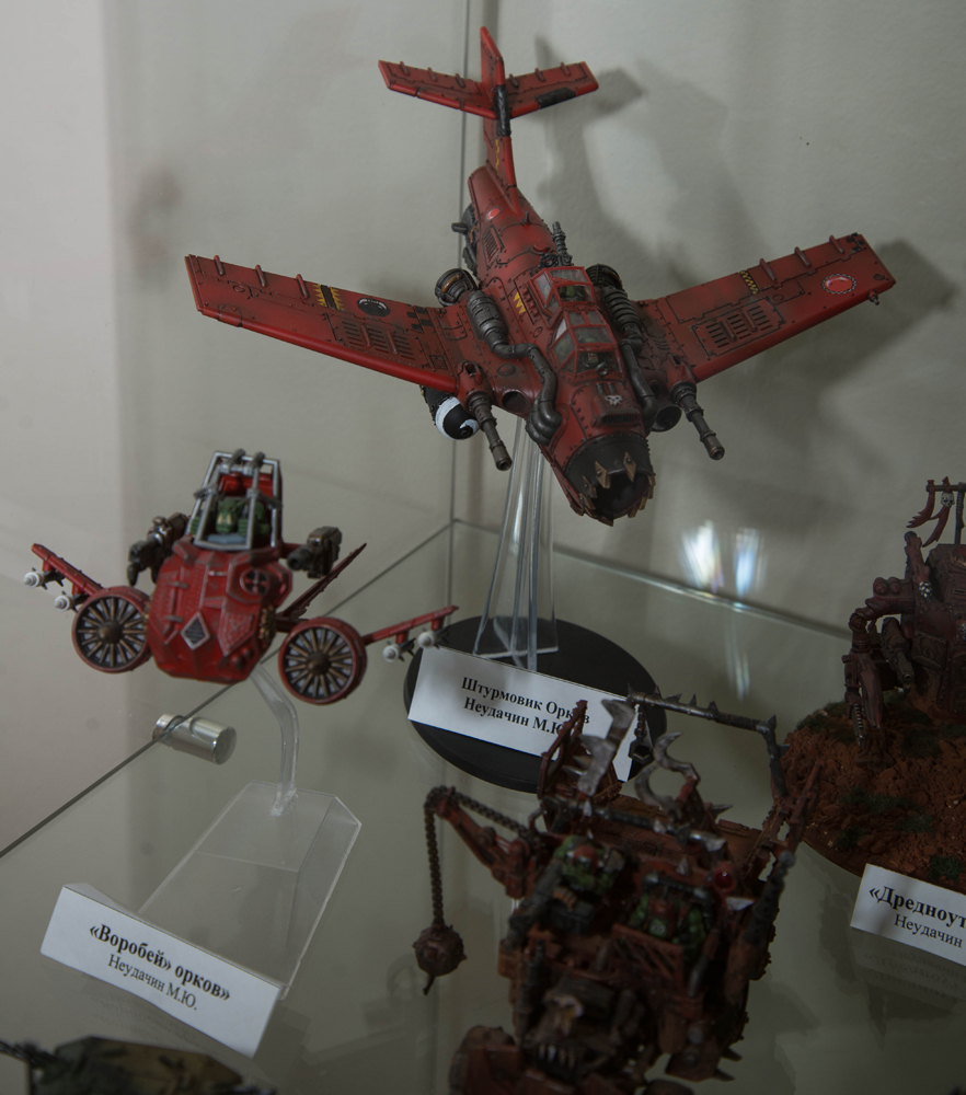 авиации было к сожалению очень мало, много брони и виньеток. несколько авторов отказались от участия и поэтому пришлось заполнять ветрины на скорую руку, отсюда и некоторый сумбур. детские работы тоже разные по качеству, для большенства это первая выставка.