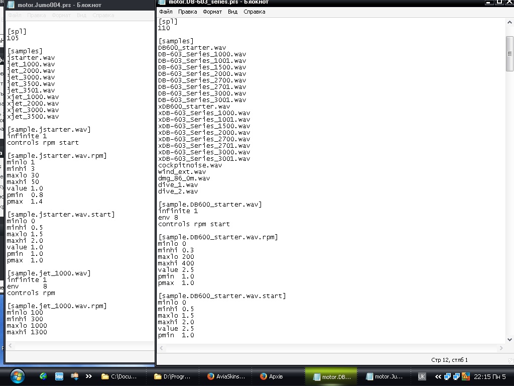 Итак. Правильно формулирую вопрос. Есть файлы с разрешением .prs. Именно они (как я понял) отвечают за проигрывание звука в указанное время и место. Пол-дела сделано. Но какой параметр за что отвечает, пока не понятно. Вот, к примеру такой файл для двигателя BMW. Может кто по-пунктам расшифрует?