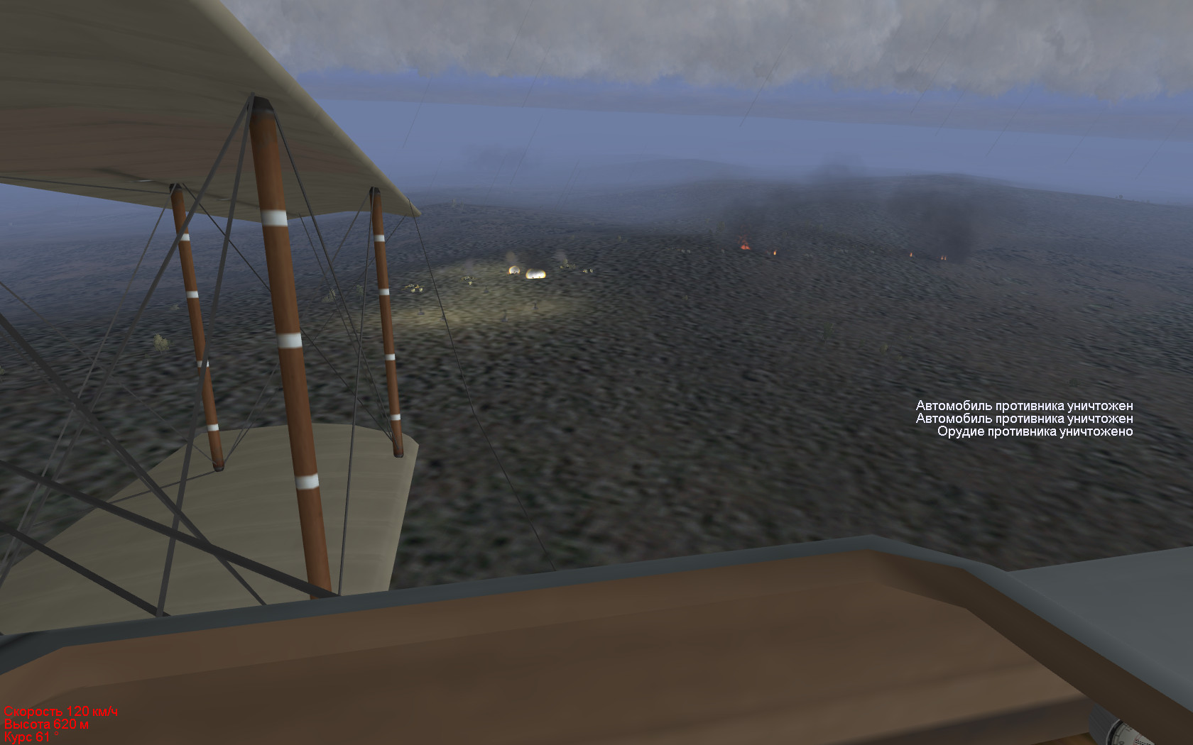 1. выбор вооружения 2. наводим на цель (я поворачиваю при помощи мыши) 3. нажимаем кнопку огонь(у меня кнопка2 - пушки) Результат Главное. не снижайтесь сильно низко, а то накроет.