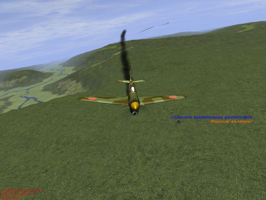 В общем, потестил "двоечку" ещё немножко. Всё-таки нужно повысить максимальную скорость - в горизонтальном полёте на максимальном режиме догнал её до 400 км/ч, потом допикировал до 450 и снова перешёл в горизонтальный полёт. Режим двигателя не менял (100% + форсаж), стрелка спидометра медленно вернулась на значение 400. (реальная макс. скорость - 575, крейсерская - 425)