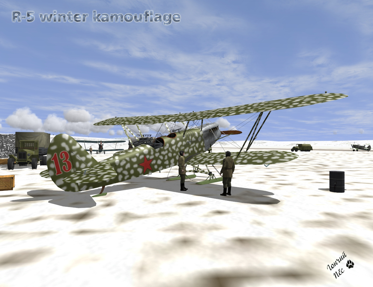 Зимняя полу историческая окраска 1941-1942 гг. В архиве один скин с опознавательными знаками и красным номером "13" на киле. |