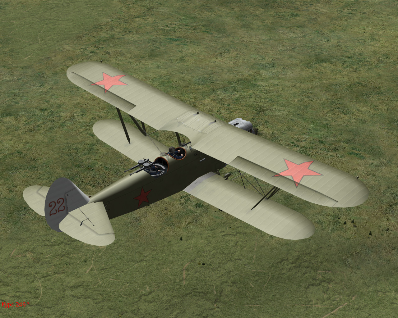 В архиве один скин с опознавательными знаками и номером "22" на белом киле. Верхние и боковые части планера выкрашены цветом "Защитный" по каталогу "АКАН". |