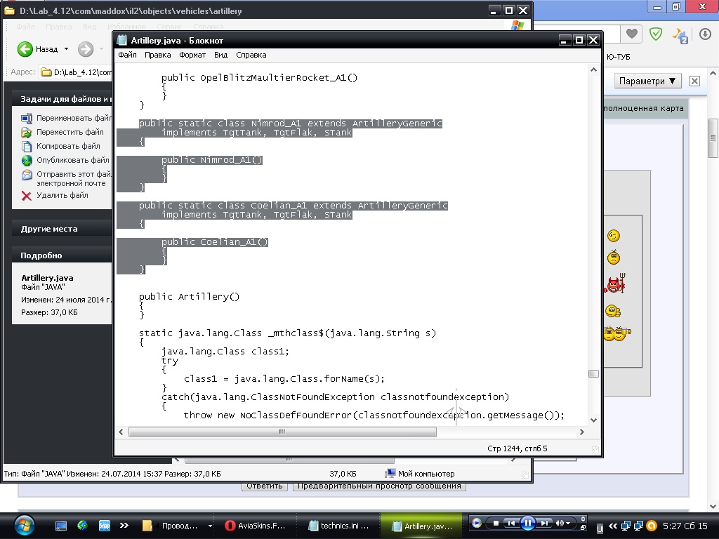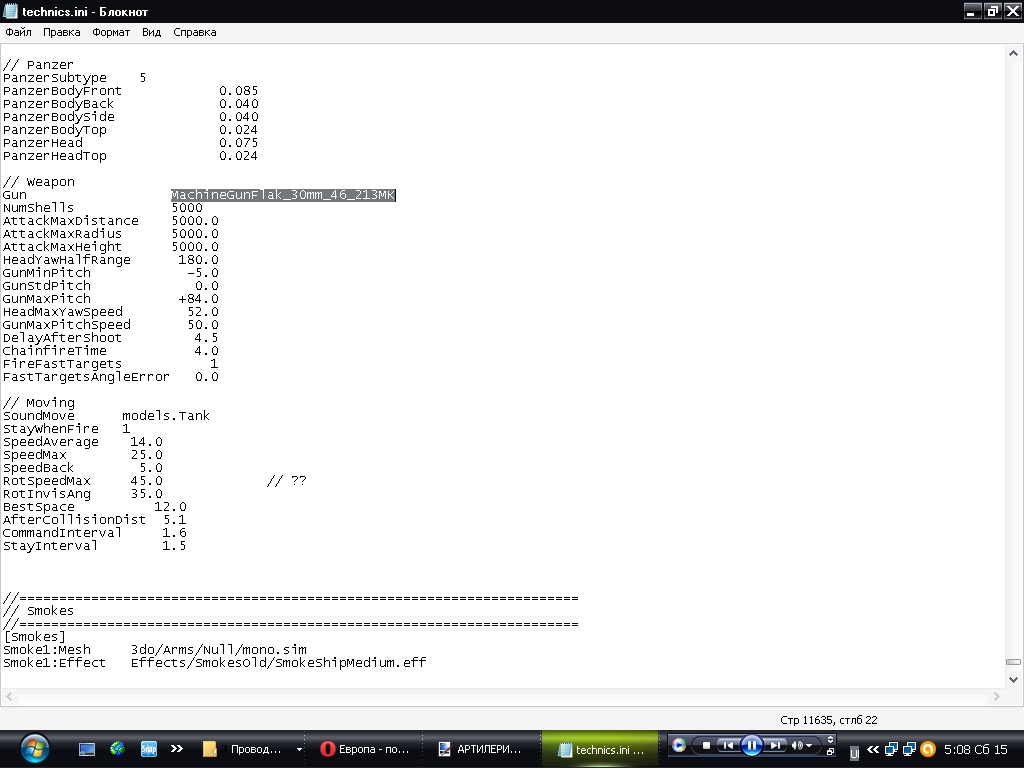 Почему я о классах завёл речь - мне нужно было приделать к зенитному танку МК-213, не изменяя дефолтного, как бы дополнительным модом. Поэтому и пришлось это дело допысывать в класс артилерии., это кроме записи в техникс и написания отдельного класса таковой пушки для зенитного танка., в общем что бы всё было по уму и работало без глюков. Так вот - ели бы я имел переведённые в Ил из другой игры меши танков, то следовало бы начать из классов - посмотреть что и как называеться, там есть интересные важные пометки, потом смотреть в техникс.ини - там тоже интересные вещи написаны - как и куда стреляет и как крутяться меши., при модернизации дефолта можно обойтись и техникс.ини, но исходя из записей в техникс.ини Ил по своим правилам и будет пытаться отобразить и запустить в движении те меши что назвали, допустим Т-35, считывая в мешах цыфирь там написанную. Что бы анимировать движение гусеницы - это уже нужно переписывать кучу классов - тапл, вектор и т.д., к изучению чего я даже и не приступал. В общем так - если автор только перевёл 3До танков в Иловские меши, они должны быть построены по правилам - в смысле те строки в техникс.ини должны иметь соответствие в хуках - чего по логу не наблюдаеться. [21:54:04] Hook: Gun_1 not found [21:54:04] com.maddox.il2.engine.ActorException: Hook: Gun_1 not found Ну а дальше Ил рассказывает что мол при создании миссии при попытке отобразить Т-28-35 он столкнулся с проблеммой такого то несоответствия и в конце так и пишет - мол ваши меши таки малость ф...о, не кондицийни , в общем - не могу зоздать артилерию обьекта. at com.maddox.il2.game.GameWin3D.main(GameWin3D.java: 235) [21:53:54] SPAWN: Can't create Artillery object [class:com.maddox.il2.objects.vehicles.artillery.Ar tillery$T28]. Простите за некоторую грубость. ![]() Возможно дописка хука решит проблемму - если все остальные меши этих двух танков прописаны правильно.И ещё - этот мой пост не в той теме мной писан - так что можно перенести туда, куда это будет более правильно.