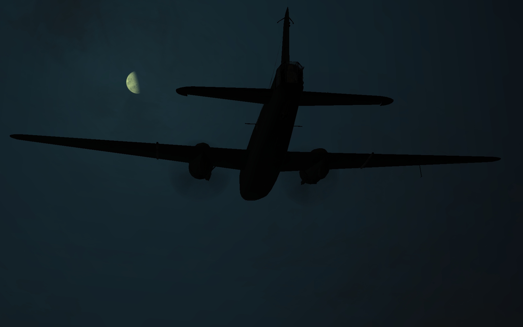 Брифинг миссии, ночной взлет, кабина Москито (типа Веллингтона)в лунном свете: